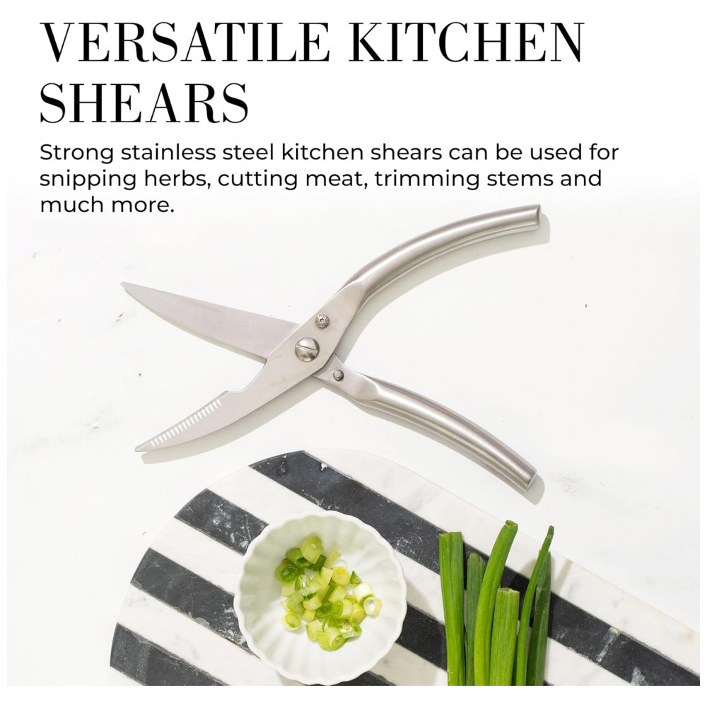 SIMPLIFIQUE SUA COZINHA COM ESTE CONJUNTO DE BLOCOS DE FACAS BRANCOS elimine conjuntos incompatíveis ou facas soltas e sem brilho que bagunçam as gavetas e melhore sua cozinha com nosso conjunto de facas prateado e branco construído em apontador que foi projetado propositadamente para complementar a decoração e acessórios brancos da cozinha e ser exibido com orgulho em seu bancada Conjuntos de facas para cozinha com tesouras são um presente atencioso para férias, casamento, inauguração de casa ou formatura