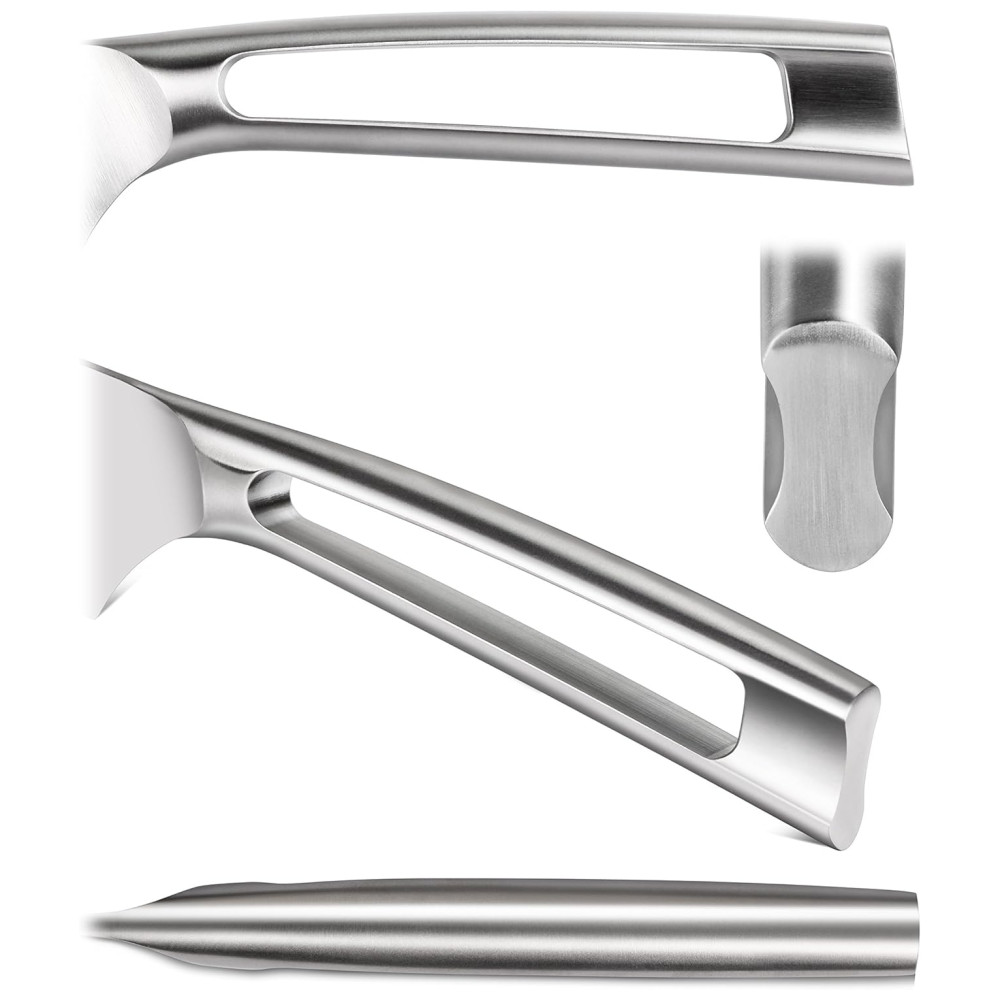 O projeto patenteado RedDot 2016 Award Winner concentra se na estrutura toda metálica e no acabamento ergonômico fosco Facas completas forjadas a partir de aço Sandvik 14C28N sueco de grão fino para durabilidade incrível, resistência a manchas e retenção excepcional de arestas Design de faca patenteado que se concentra em equilíbrio notável e uma alça ergonômica que proporciona uma aderência confortável e segura O meticuloso processo de tratamento térmico ULTRA6 de seis estágios aumenta a dureza e a força para permitir a máxima nitidez inicial da ponta afiada à mão em 16 graus no estilo asiático. Série TN1 A Série TN1 contrasta sua beleza sutil com uma lâmina afiada de ponta reta. A faca toda forjada em metal tem um acabamento fosco que fornece resistência superior para durabilidade excepcional. Um design minimalista e elegante com alça oca garante que essas facas sejam confortáveis e esteticamente agradáveis. Cada faca é bem equilibrada e perfeitamente trabalhada, permitindo o uso pesado da cozinha e a limpeza fácil. Materiais de primeira qualidade. Esta faca apresenta o aço Sandvik 14C28N sueco para um produto duradouro e duradouro. O Swedish Steel oferece uma mistura de incrível dureza e durabilidade, com a capacidade de atingir uma classificação de dureza de 59 , 2 na escala de classificação de dureza Rockwell