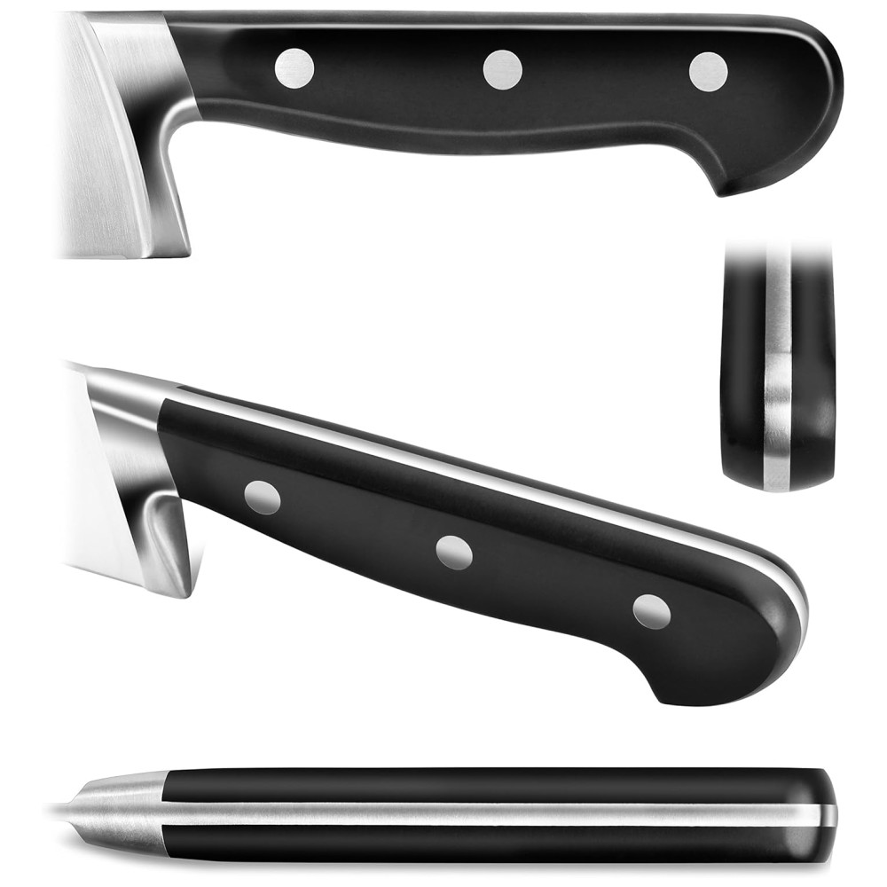 Série V2 A série V2 define o padrão feito bonito. Esta série foi projetada propositadamente para mostrar a beleza simples das facas de cozinha clássicas, concentrando se em elevar sua funcionalidade prática. Usamos uma borda oca de estilo asiático para fornecer um corte suave e sem esforço. Nossas facas são bem equilibradas e perfeitamente trabalhadas, permitindo o uso pesado da cozinha e a limpeza fácil. Materiais de primeira qualidade. Esta faca possui aço alemão X50Cr15MoV de alta liga para um produto duradouro e duradouro. Este aço de alta liga é geralmente mais macio, o que permite que seja facilmente afiado novamente após uso pesado. Fabricação superior. Cada lâmina passa por um processo de tratamento térmico de precisão de 6 estágios, que leva a granulação fina do material a uma estrutura interna mais estável. Um processo tradicional de afiação manual em três etapas garante uma borda nítida, enquanto o processo de endurecimento por gelo garante que a lâmina mantenha sua nitidez. Principais Características Forjadas a partir de aço inoxidável X50Cr15MoV de alta liga, submetidas a várias etapas ULTRA 6 Processo de tratamento térmico Lâmina endurecida em gelo fornece nitidez duradoura Lustrada e afiada à mão por um especialista em lâminas Alça clássica com reforço redesenhado com patente