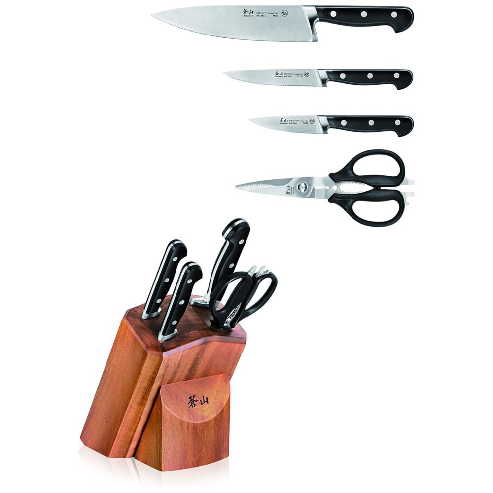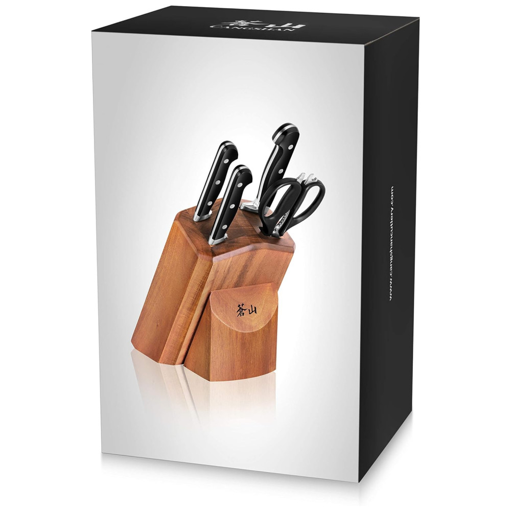 Conjunto de Facas V2 Series Em Aço 5 Peças Acácia CANGSHAN 1022520 Preto