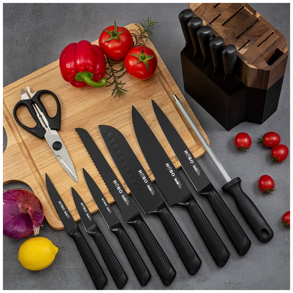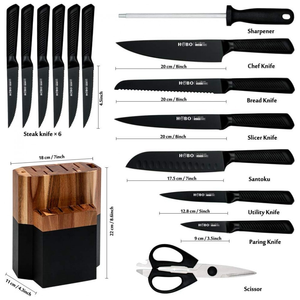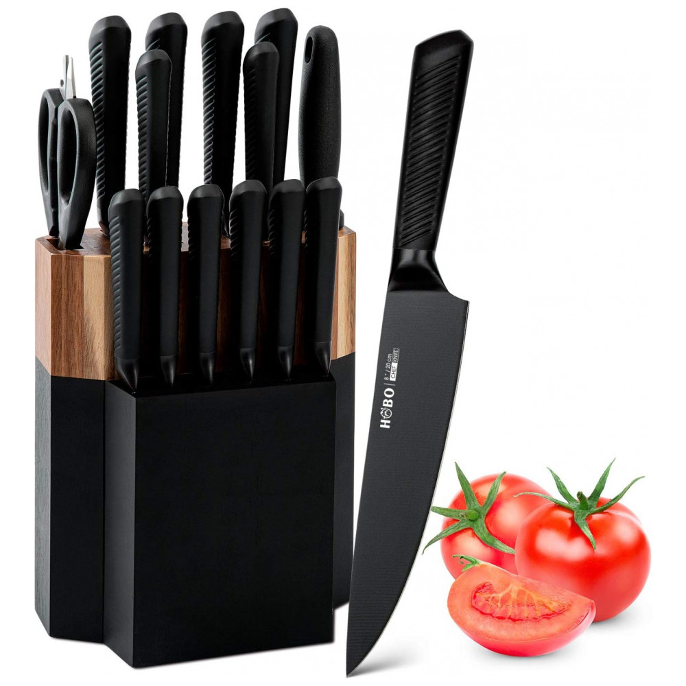 Conjunto de Facas Vvwgkpk em Aço Inoxidável com Bloco de Bancada Multinível 15 Peças Preta