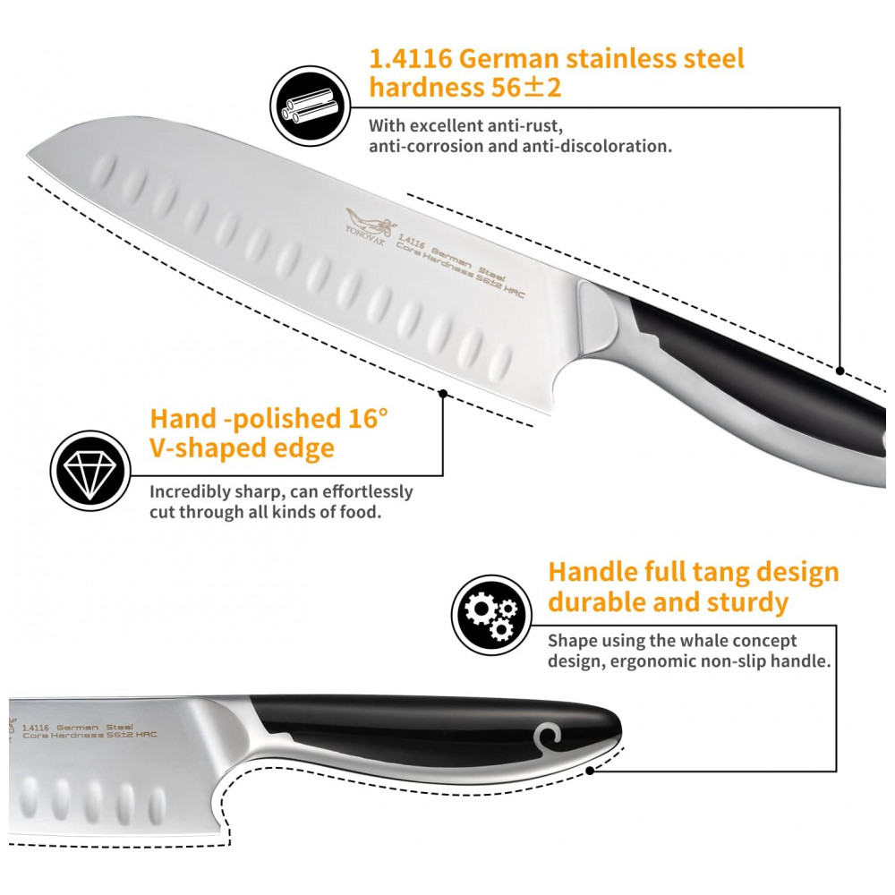 Profissionalismo do YONOVAK é feito de aço inoxidável alemão de alto carbono 1.4116, que possui excelentes propriedades à prova de ferrugem, corrosão e descoloração, e seu desempenho é conhecido em todo o mundo.