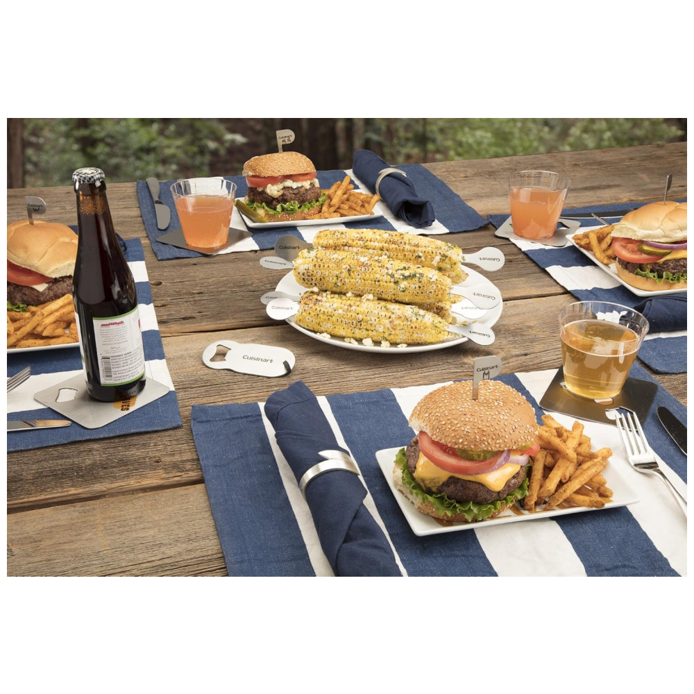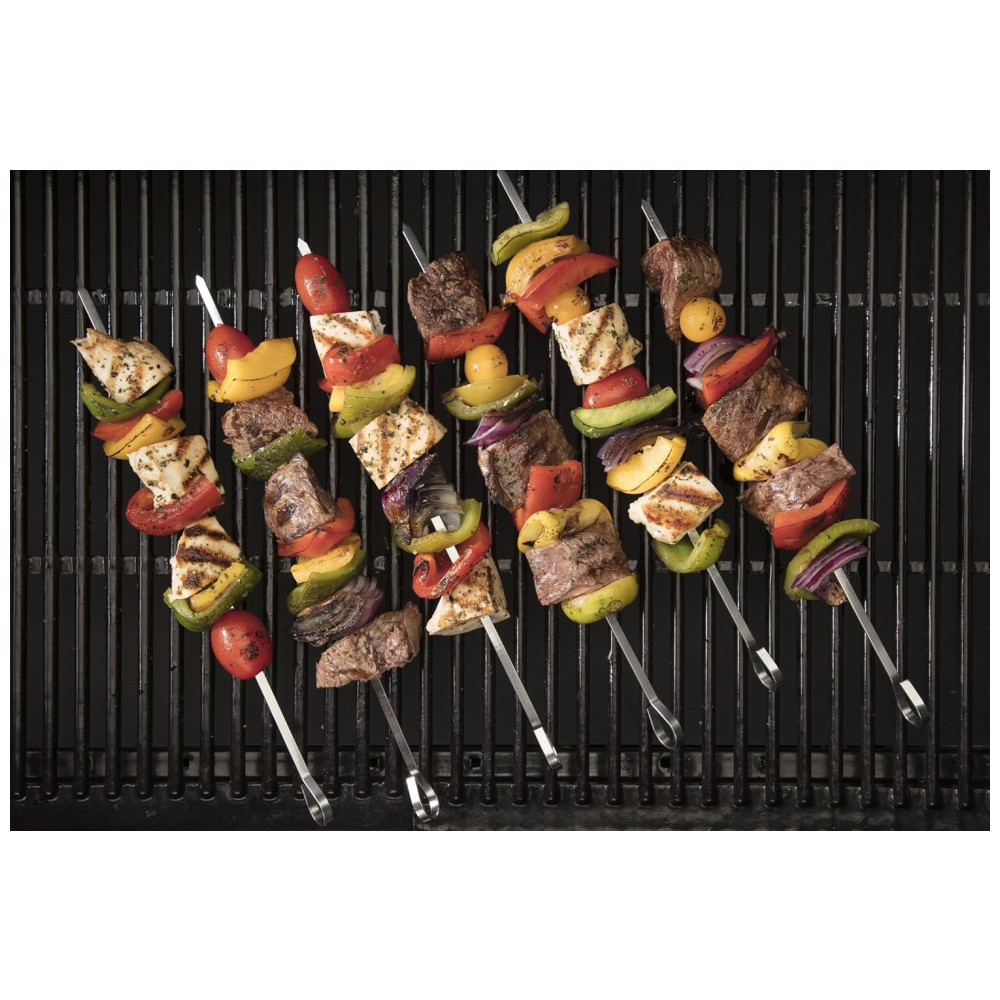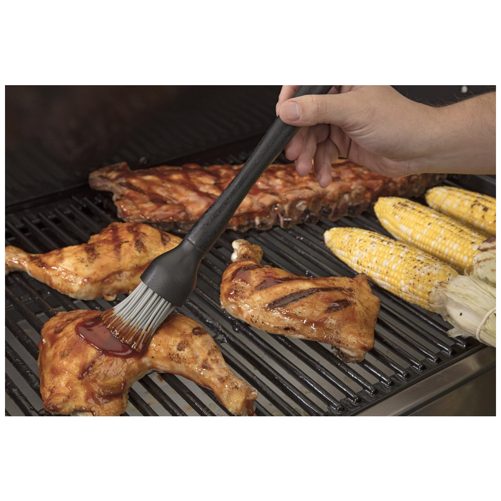 CONJUNTO DE 36 PEÇAS O conjunto inclui Espátula de Chef, Garfo, Pinça, Escova de Alinhavo, Cabeça de Escova de Silicone de Substituição, Cabeça de Escova de Esfregona de Substituição, Luva Resistente ao Calor, 6 Espetos de Aço Inoxidável, 8 Suportes de Milho de Aço Inox, 10 Bandeiras de Hambúrguer, Grelha de Serrote Raspador, abridor de garrafas, guia de temperatura, livro de receitas e estojo de zenamento