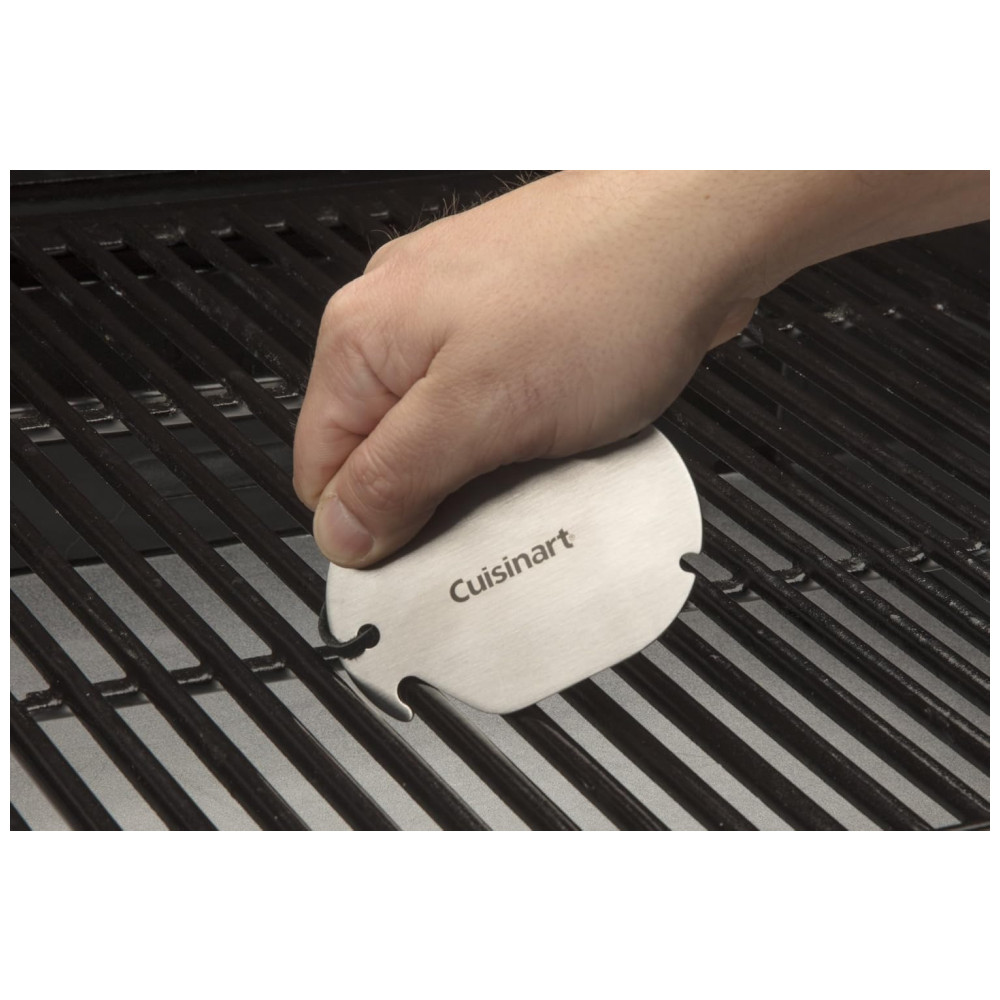 RASPADOR DE DENTE DE SERRA Esta ferramenta de limpeza exclusiva possui dentes semelhantes a serras e outros entalhes para ajudá lo a limpar todos os cantos e fendas sujos de sua churrasqueira