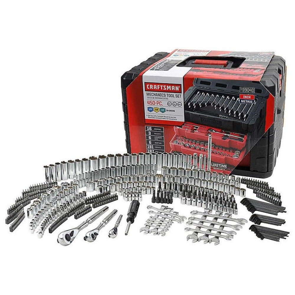 Facilite o trabalho de um dia duro com este conjunto de ferramentas mecânicas de 450 peças da Craftsman. De qualquer projeto tão complicado quanto passar o dia sob o capô para algo tão simples como apertar um parafuso, você terá o que precisa para o trabalho. Este conjunto vem em uma variedade de tamanhos e medidas que garantem que você sempre tenha o que precisa em mãos.