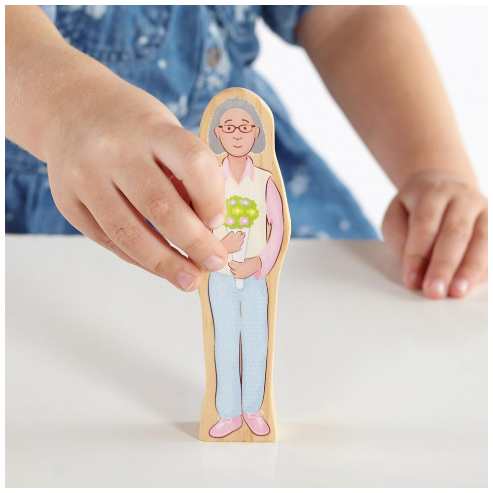 Conteúdo da embalagem: 28 figuras em madeira maciça da coleção Wedgies Multicultural Family