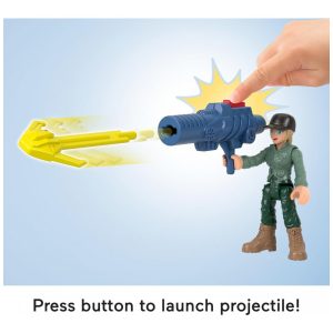 O brinquedo acompanha um lançador com projétil que pode ser carregado e acionado por botão, permitindo tentar derrubar dinossauros ou acessórios como parte das missões de “rastreamento”. As figuras possuem tamanho fácil de segurar por mãos pequenas e foram projetadas para estimular coordenação motora, imaginação e criação de histórias.