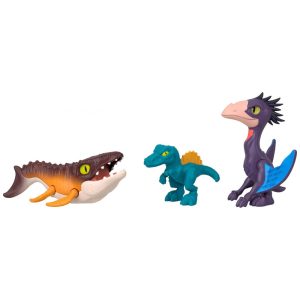Conteúdo principal: 1 figura humana, 5 dinossauros, 1 lançador, 1 projétil e 3 acessórios