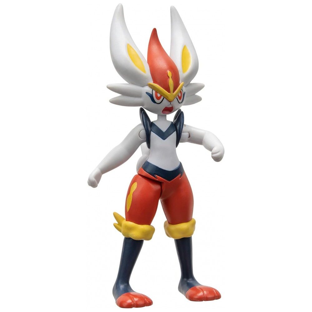 O Cinderace conta com pontos de articulação em cabeça, braços e pernas, permitindo posicionar o personagem em diferentes poses de ataque, especialmente combinando com a bola flamejante que pode ser usada em cenas de chute. O Pikachu vem em escala menor, em uma pose dinâmica que complementa o Cinderace, formando uma dupla de batalha pronta para compor cenários com outros sets e playsets da mesma linha.