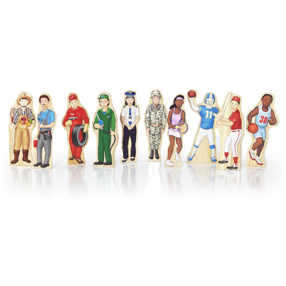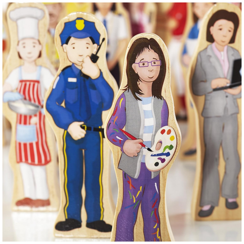 Conjunto de figuras profissionais em madeira Guidecraft Wedgies Career com 30 personagens para dramatização e exploração de profissões