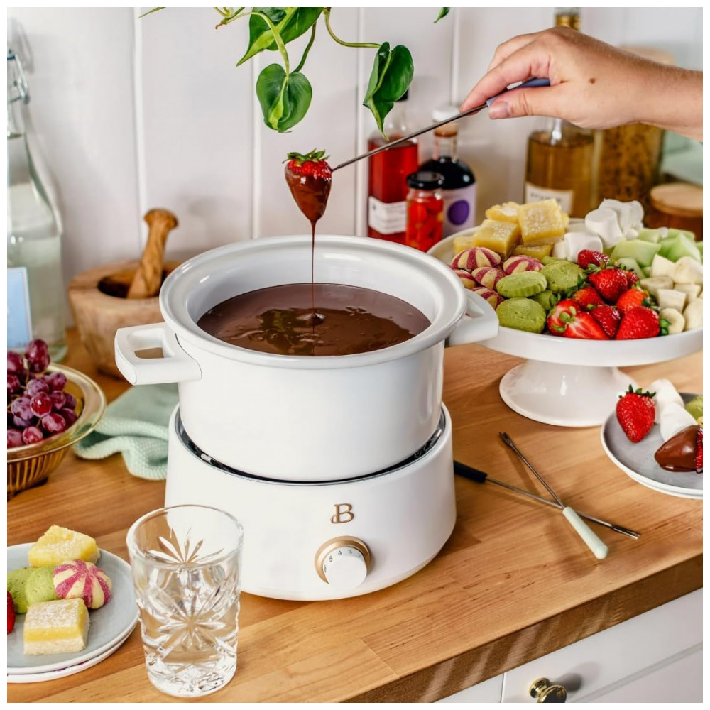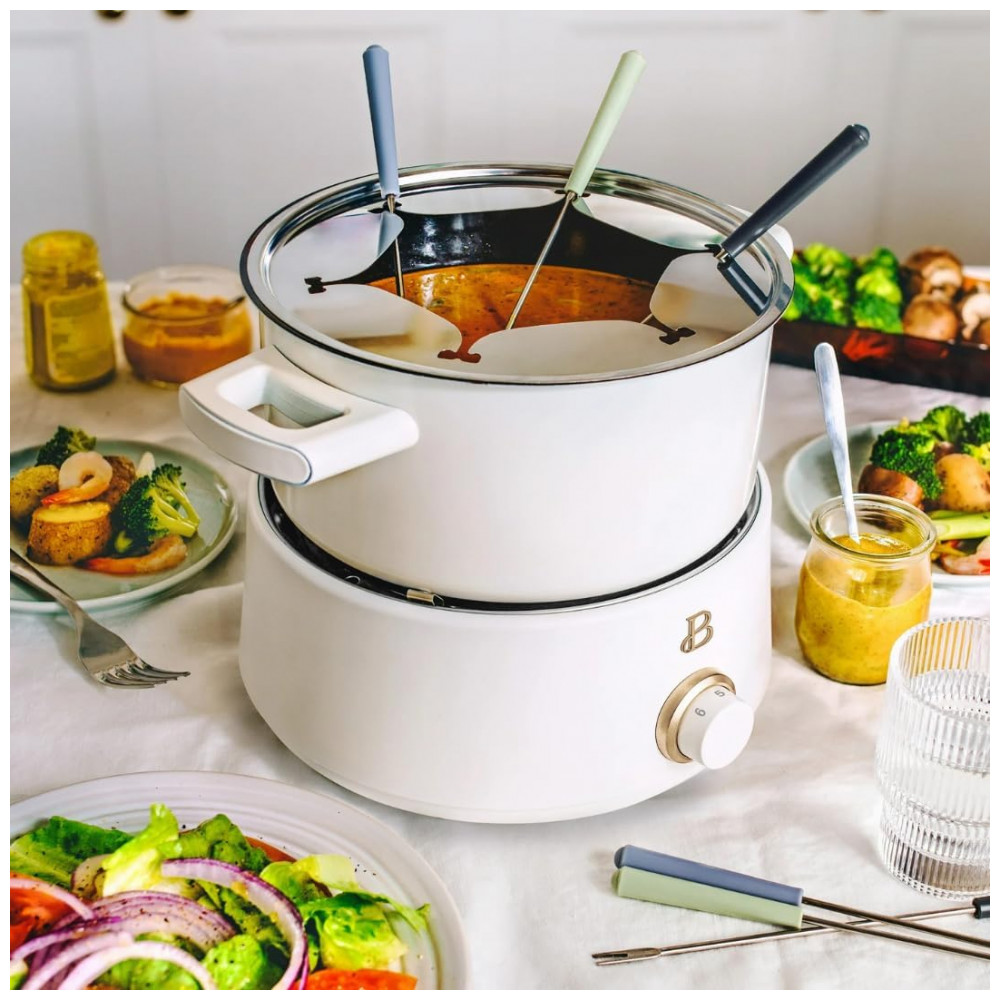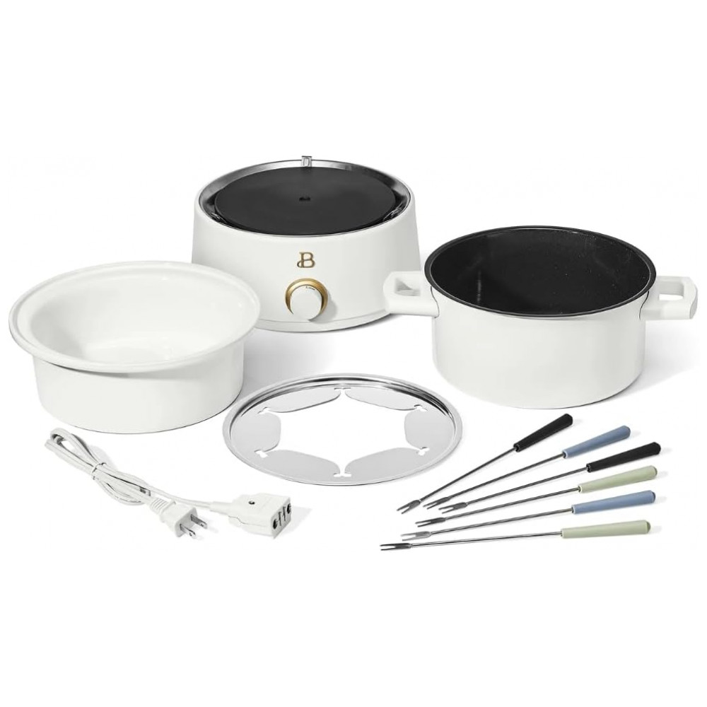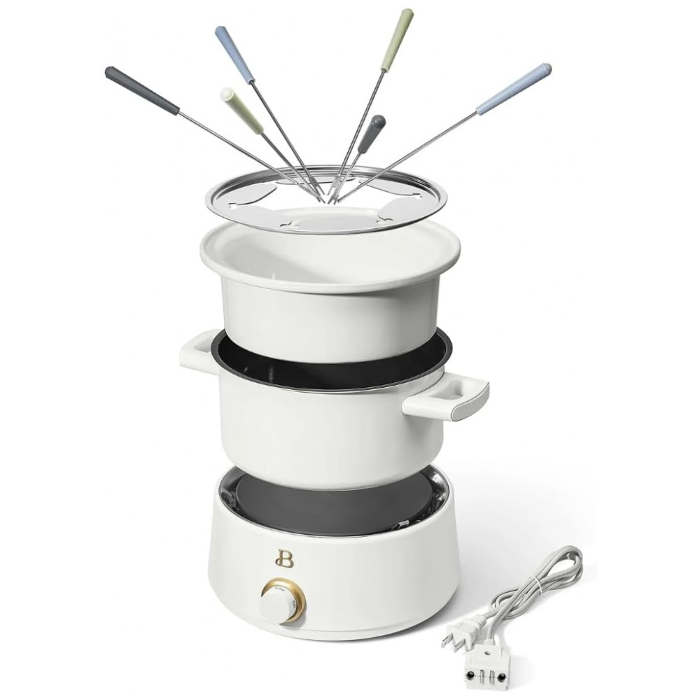 Conjunto de fondue elétrico 3L Beautiful by Drew Barrymore branco inox 1000W com panela cerâmica 2L