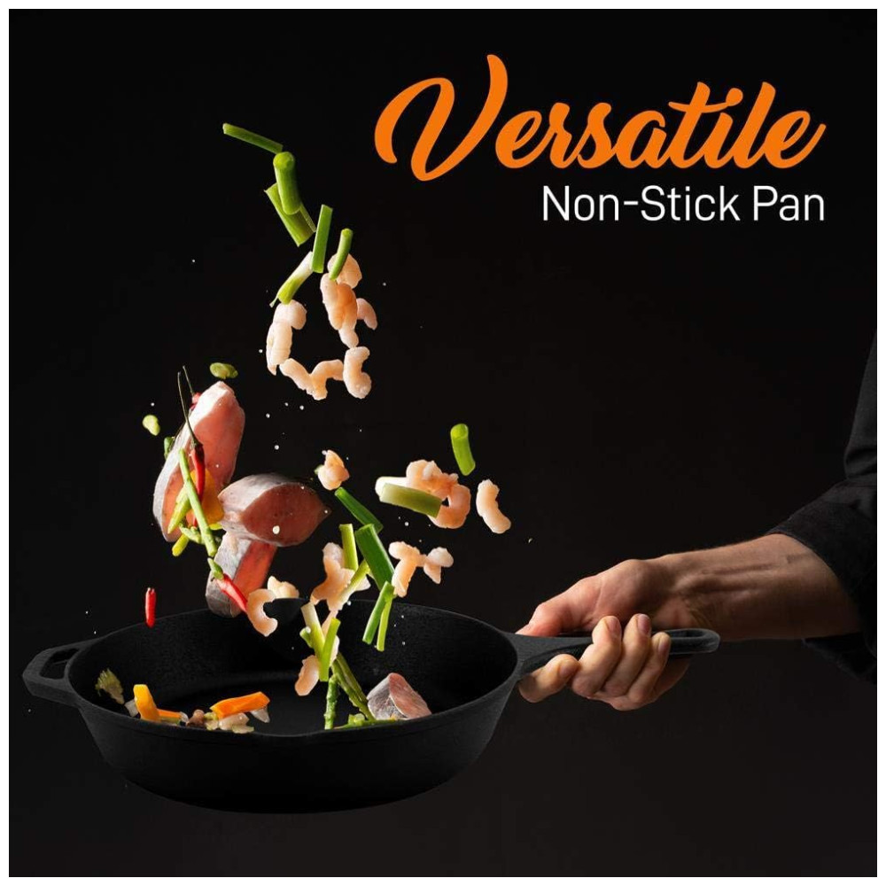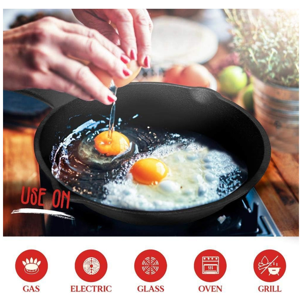 PRÉ TEMPERADO O clássico conjunto de cozimento da frigideira vem pré temperado com óleo vegetal 100 natural para evitar que as panelas enferrujem nas prateleiras das lojas ou no zém e também evita que os alimentos grudem. Ideal para cozinhar frango, bife e vegetais