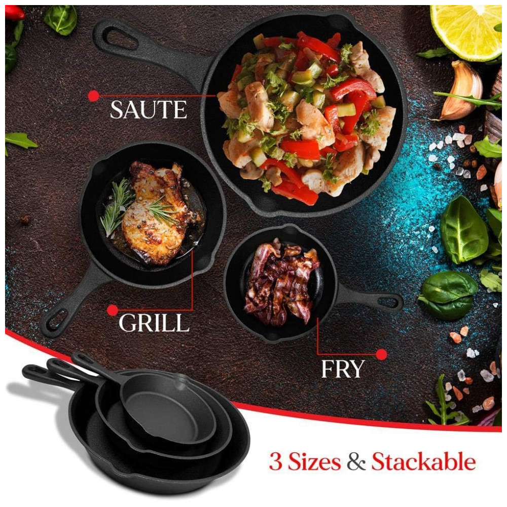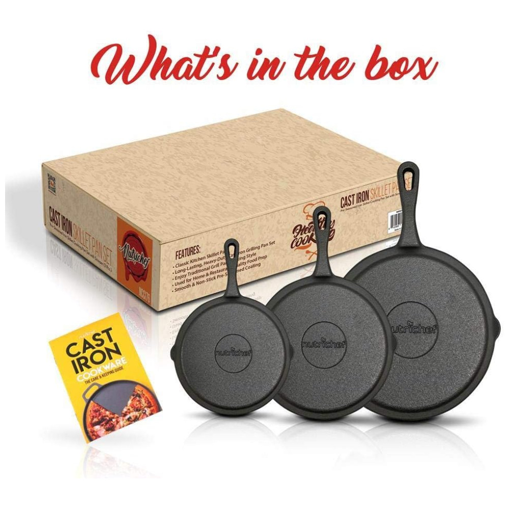Conjunto de Frigideiras de Ferro Fundido Profissional com Alças de Silicone 3 Peças NUTRICHEF NCCI76 Preto