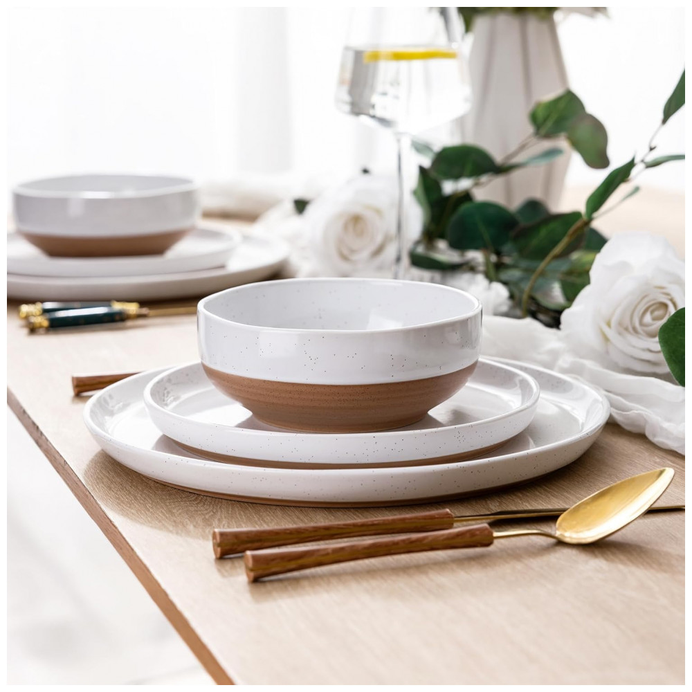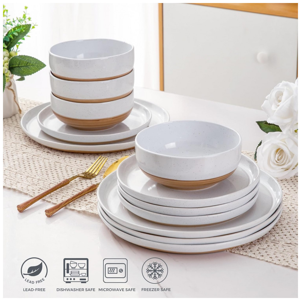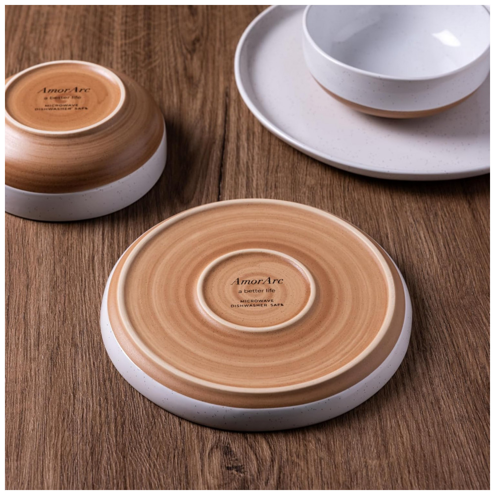 Conjunto de Jantar de Cerâmica AmorArc para 4 Pessoas 12 Peças de Pratos e Tigelas Pintadas à Mão com Base de Terracota Rústica Resistente a Arranhõ