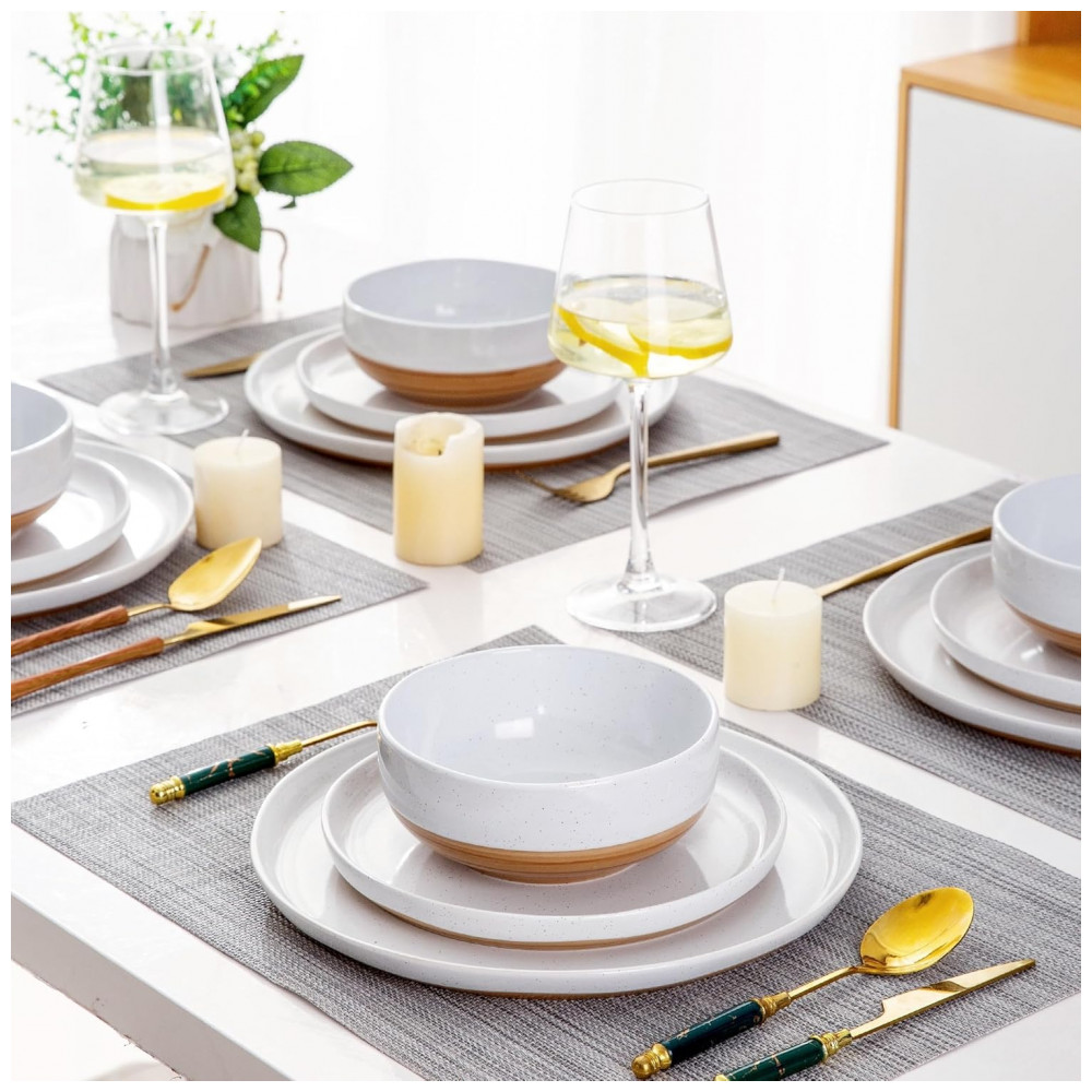 Aprecie refeições saudáveis e sofisticadas com o Conjunto de Jantar de Cerâmica AmorArc. Feito de argila degradável, livre de chumbo e cádmio, este conjunto é seguro para uso diário. Resistente a arranhões, durável e resistente a lascas, cada peça é cuidadosamente pintada à mão e possui um design moderno com borda ondulada e acabamento esmaltado. As peças empilháveis são seguras para lava-louças, micro-ondas e freezer, facilitando a limpeza e o reaquecimento. Surpreenda alguém especial com este conjunto elegante em ocasiões como mudança de casa, Natal e muito mais!