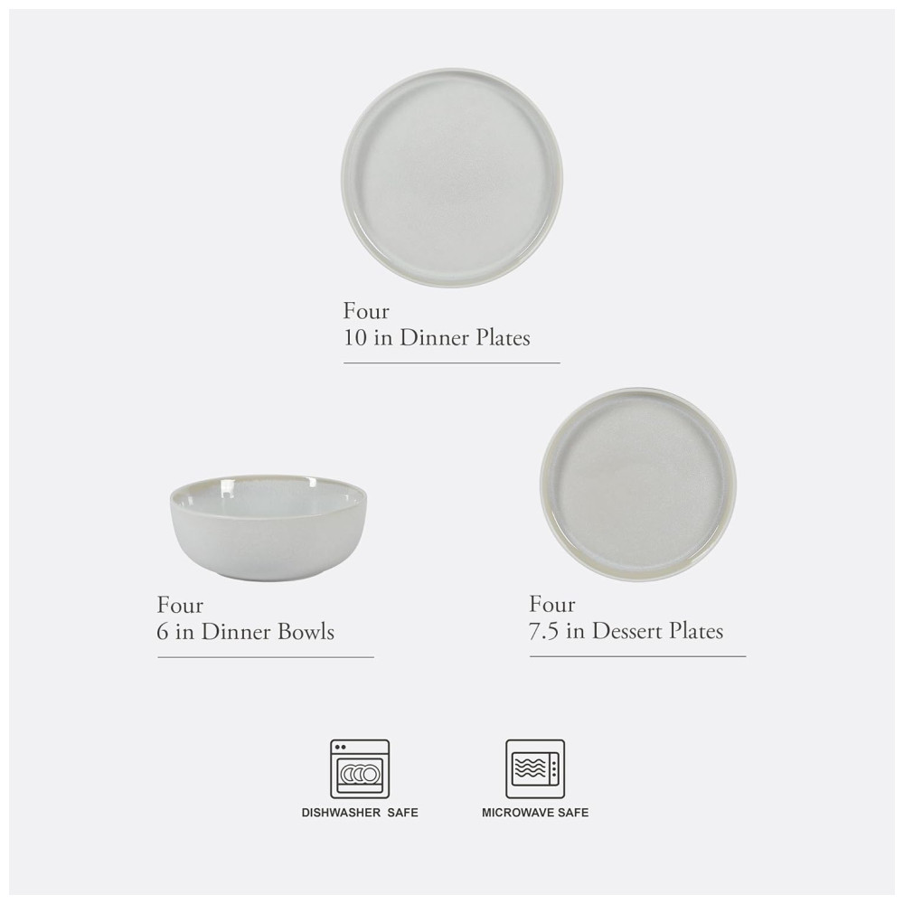 Conjunto de Jantar em Cerâmica Gibson Elite Tahoe Sunset 12 Peças para 4 Pessoas – Branco Creme