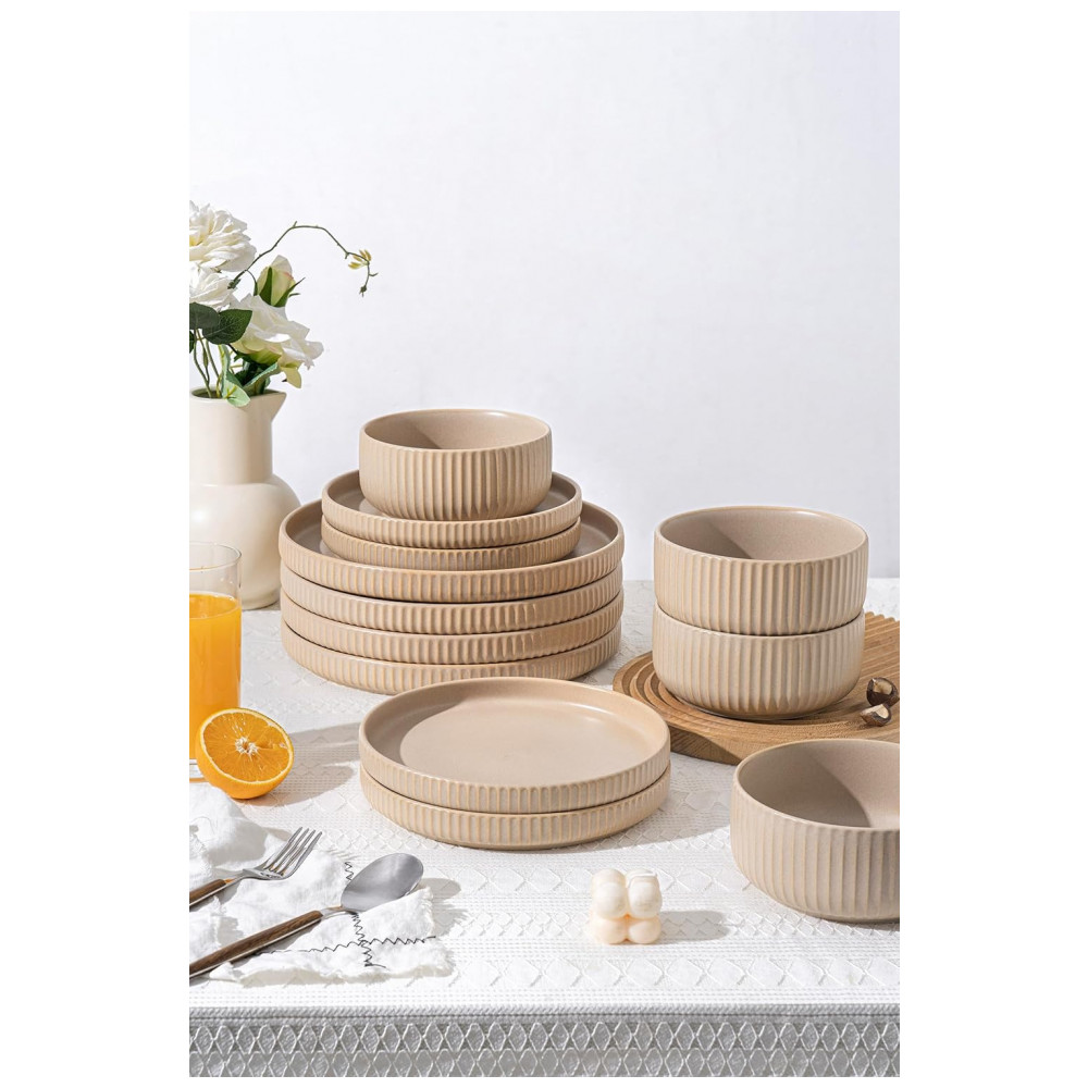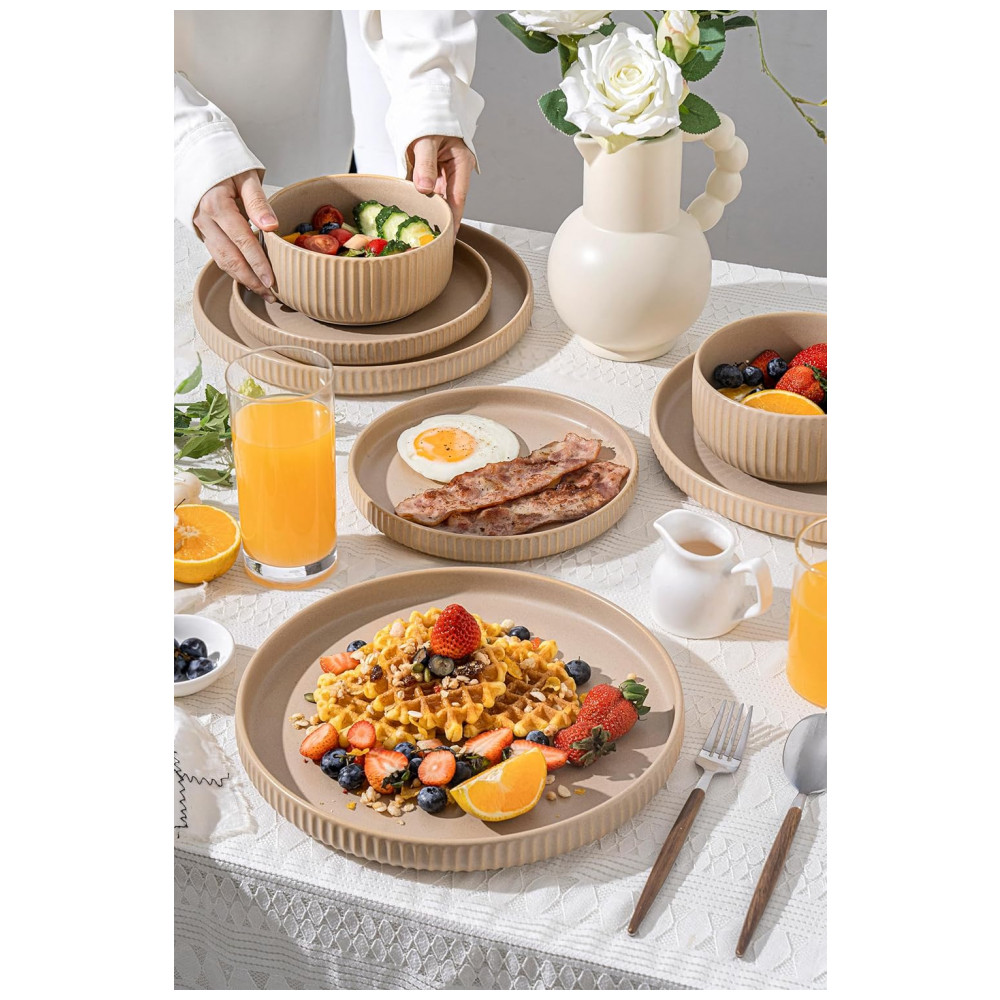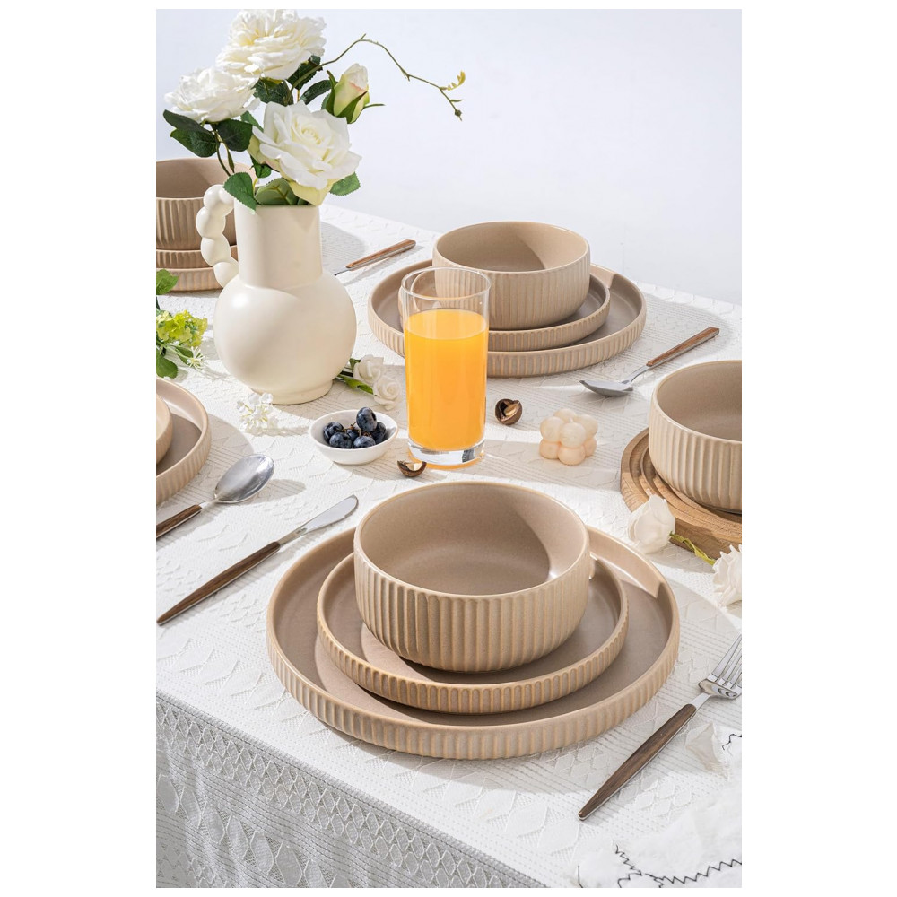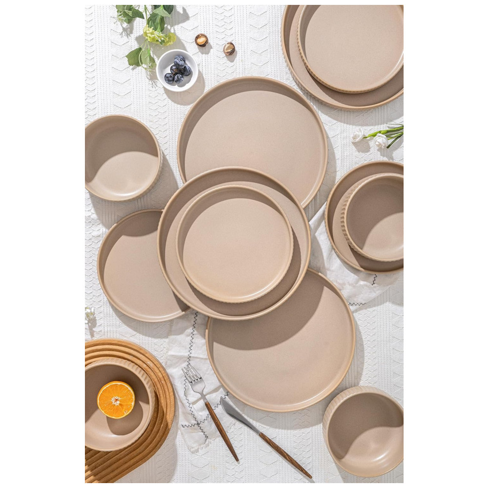 Conjunto de Jantar para 4 Pessoas FOBENTA 12 Peças em Reativo Fosco Bege Cáqui Design Único e Durável