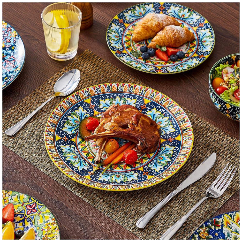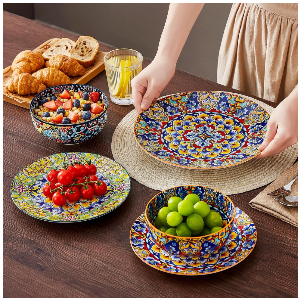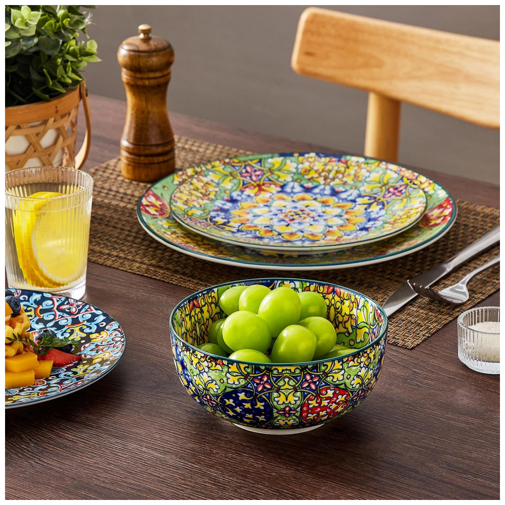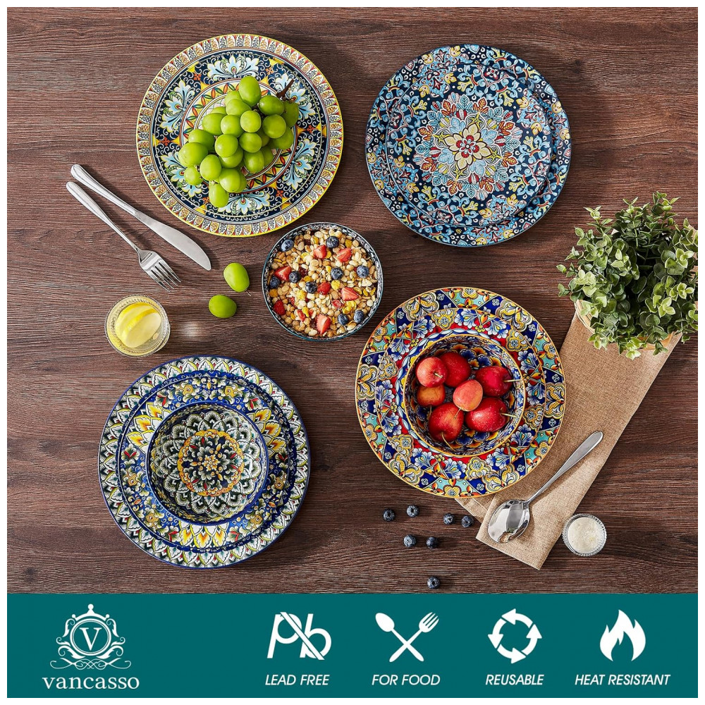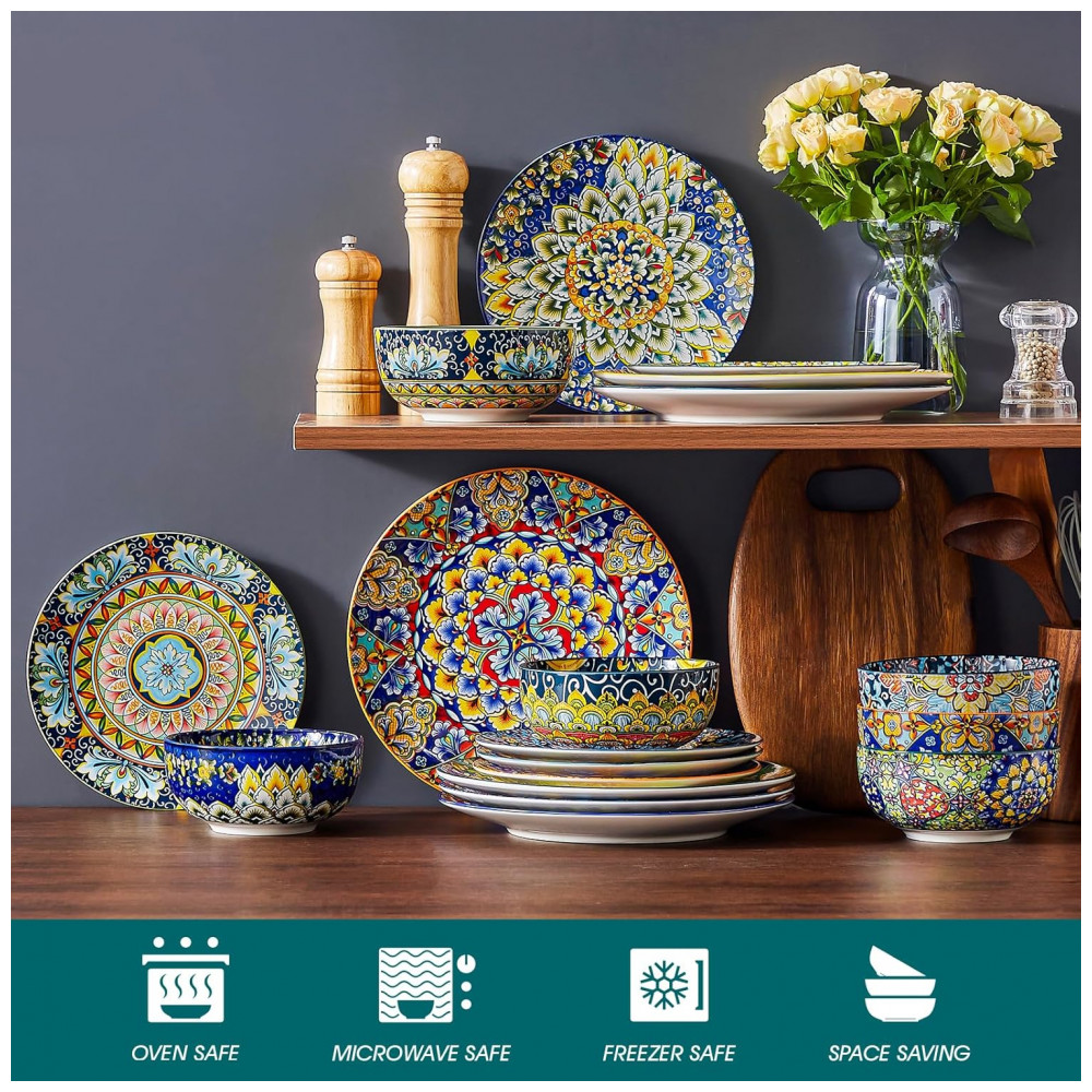Conjunto de Jantar Vancasso 18 Peças Pratos e Tigelas de Porcelana para 6 Pessoas Resistente a Micro-ondas e Lava-louças Estilo Bohemian Serviço d