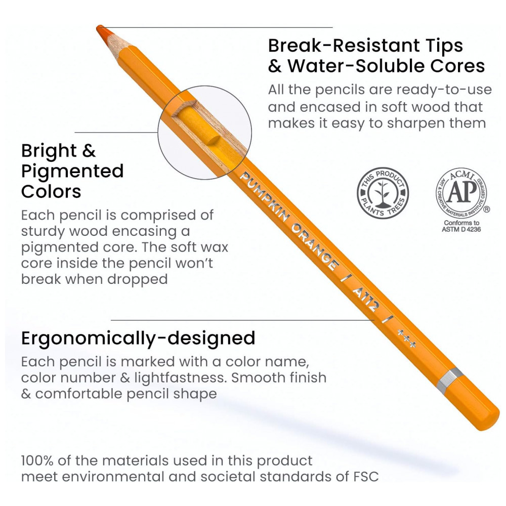Aprofunde-se no mundo da arte com este conjunto de lápis aquarela ARTEZA! Com uma leve pincelada úmida, esses lápis de aquarela permitem que você misture, sobreponha e crie efeitos únicos que proporcionam drama às suas obras. Com cores altamente pigmentadas e vibrantes, esses lápis têm núcleos macios e resistentes à quebra feitos de pigmentos à prova de luz que não desbotam com o tempo. Com 72 tons, você tem liberdade criativa. Chegam em um estojo de metal resistente, ideal para armazenamento e transporte. Este conjunto de lápis de aquarela de alta qualidade é um ótimo presente para qualquer artista. Desenvolvidos por artistas, os produtos ARTEZA inspiram a expressão artística, tornando materiais de arte acessíveis a todos. ARTEZA se destaca por fornecer materiais de pintura e desenho de qualidade para todas as idades e níveis. Encontre suprimentos de arte, artesanato e desenho para todas as suas necessidades como artista.