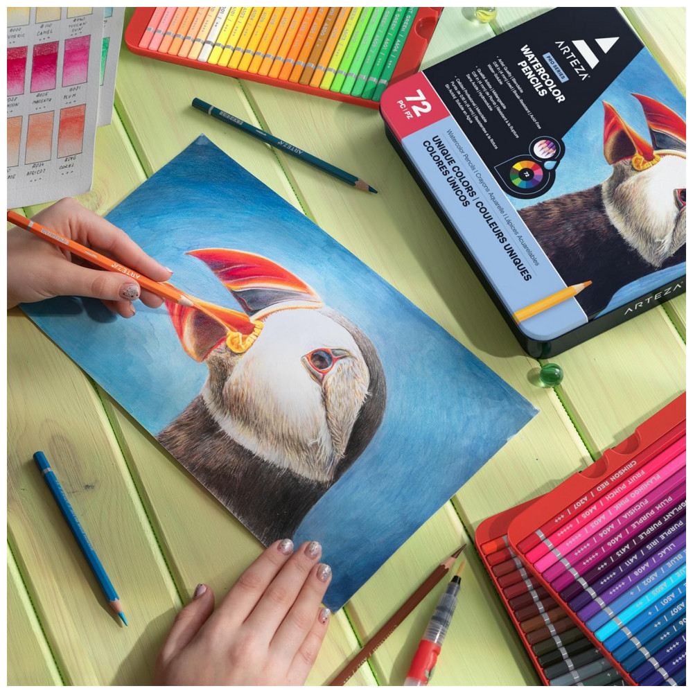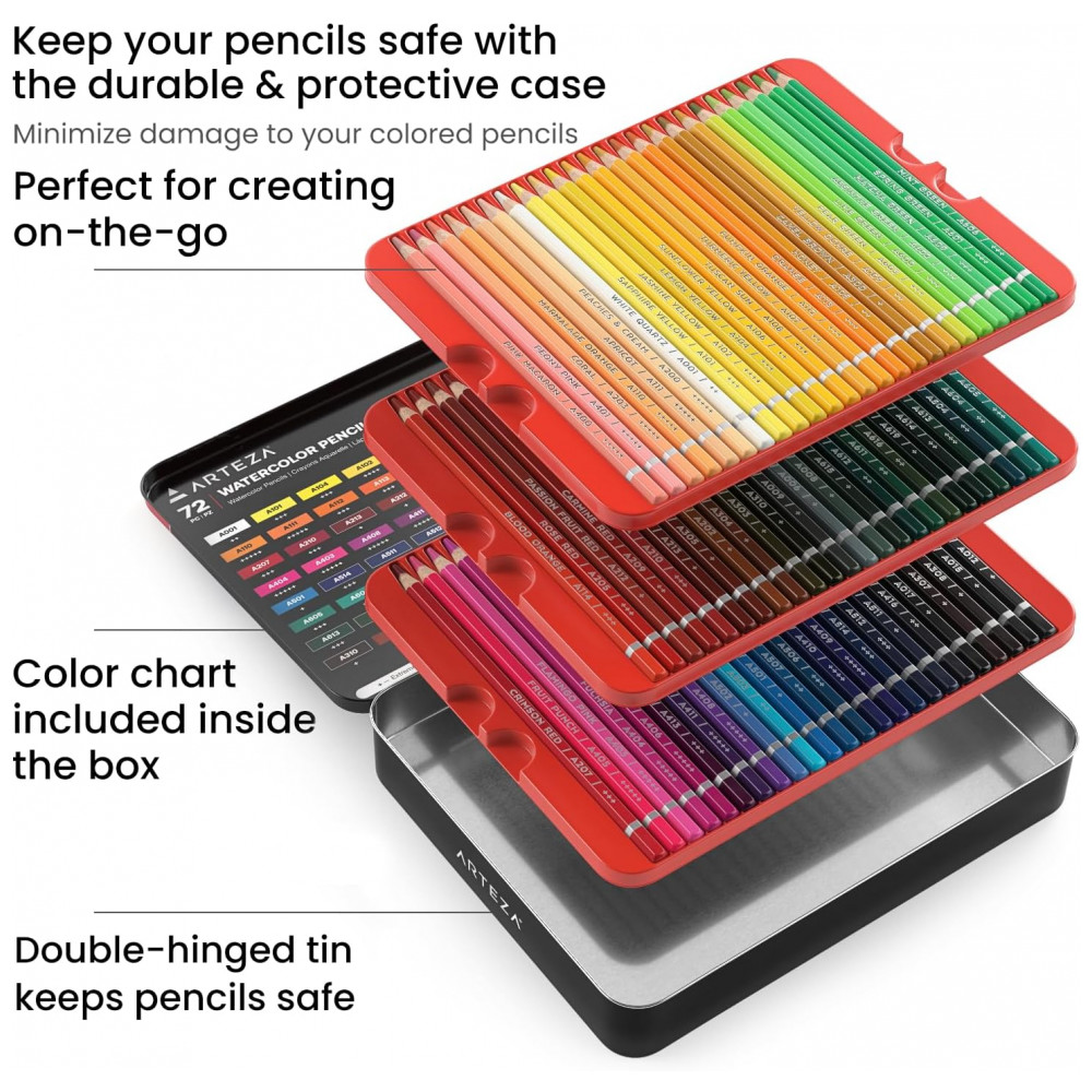 Conjunto de Lápis Aquarela ARTEZA 72 Cores Vibrantes Com Núcleos à Prova de Luz para Mesclar e Misturar em Estojo de Metal