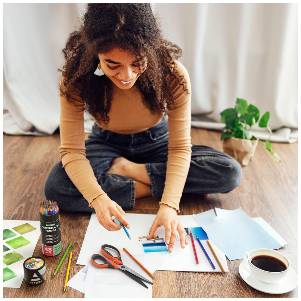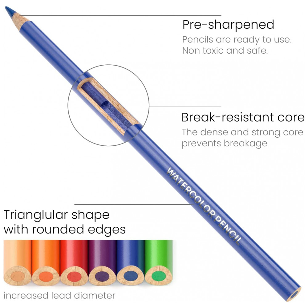 Conjunto de lápis de aquarela de alta qualidade com 49 unidades altamente pigmentadas, solúveis em água, para misturar, mesclar e sobrepor suavemente, garantindo resultados profissionais. Basta adicionar água para transformar suas cores em aquarelas. Realce desenhos ou use em seu livro de colorir favorito. Este conjunto único de lápis possui design triangular, proporcionando conforto ao segurar e fácil controle. Com minas macias e densas, cada lápis colorido é resistente a quebras e envolto em madeira de bétula de alta qualidade e ultraleve. Desenvolvido por artistas para artistas, os produtos Arteza buscam inspirar a expressão artística como parte da experiência humana. A Arteza foi criada com o objetivo de oferecer materiais artísticos de qualidade para todas as idades e níveis. Encontre uma variedade de acessórios de artes e artesanato, conjuntos de pintura, materiais de desenho e muito mais para suas necessidades artísticas.