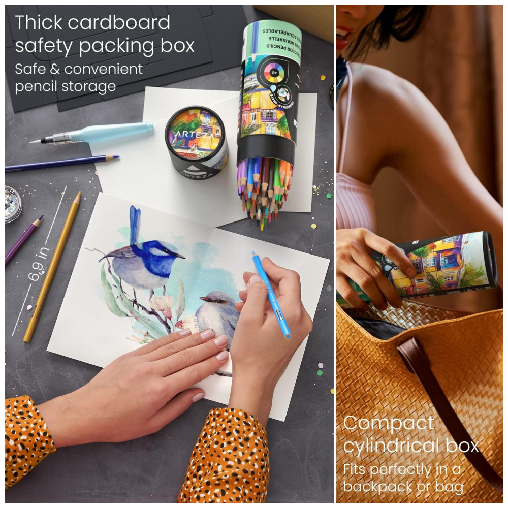 Conjunto de lápis de cor aquarela Arteza para colorir adulto 49 lápis triangulares apontados para desenho ideal para adolescentes e adultos suprime