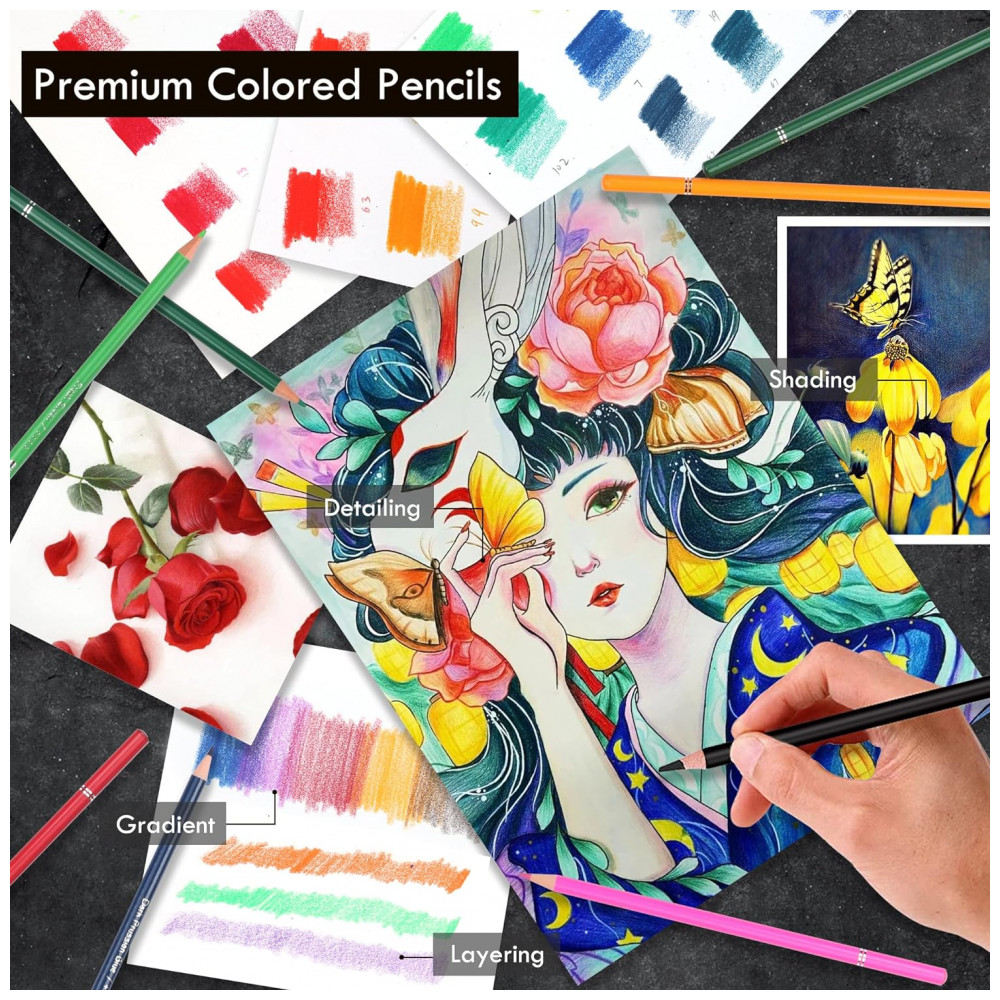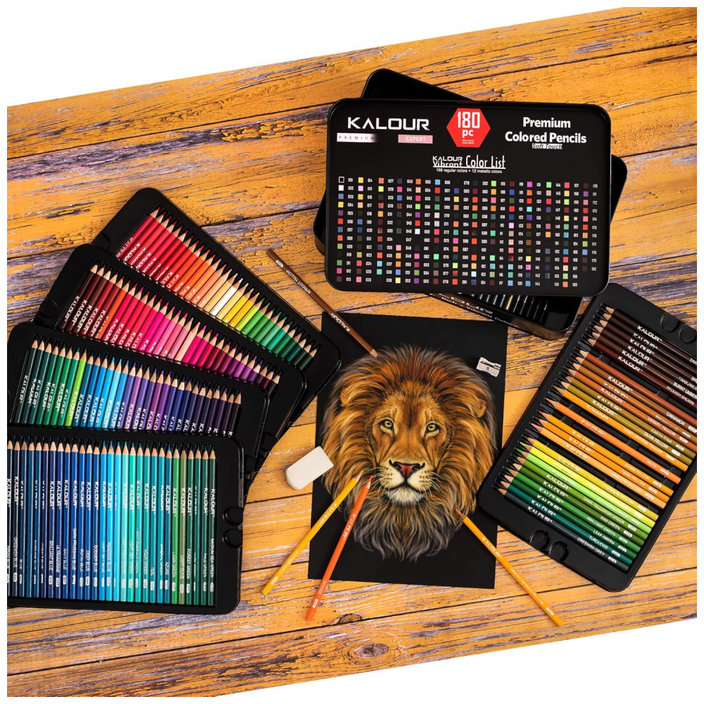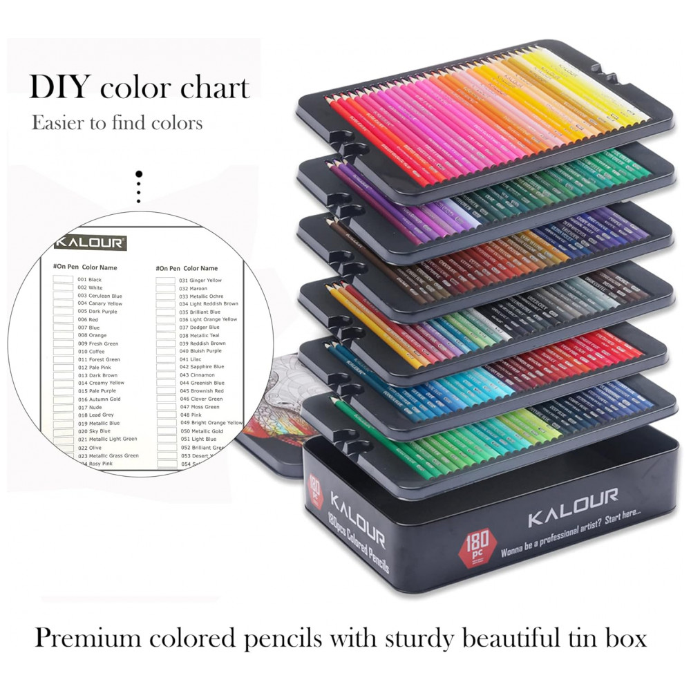 Cores vibrantes e vivas definem o conjunto de lápis de cor Kalour, composto por 180 lápis profissionais. Com 180 cores únicas, você encontrará qualquer cor que precisar para enriquecer seu livro de colorir. Presente premium de lápis de cor para artistas iniciantes, crianças e adultos. Os pigmentos ricos e suaves como seda produzem cores vibrantes, ideais para colorir e desenhar. Suas minas resistentes produzem tons incríveis, perfeitas para misturar e sobrepor várias cores. Cada lápis possui um número único e nome da cor para fácil identificação. Feitos de madeira de alta qualidade, os lápis são fáceis de apontar. Não tóxicos e seguros. As cores sempre animam as pessoas, estimulam a criatividade e a imaginação. As pessoas pintam em seu tempo livre para liberar o estresse, e as cores abundantes iluminam seu trabalho e vida, tornando a atividade de colorir muito divertida. Os lápis coloridos são armazenados em uma bela caixa de lata, com uma bandeja interna de plástico para manter os lápis organizados e protegidos. Um presente perfeito para adultos e crianças.