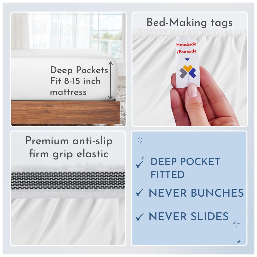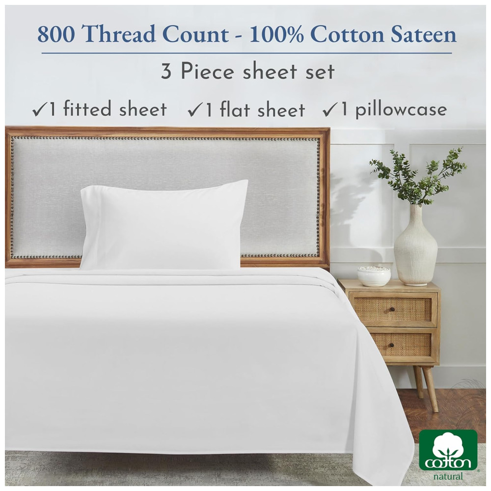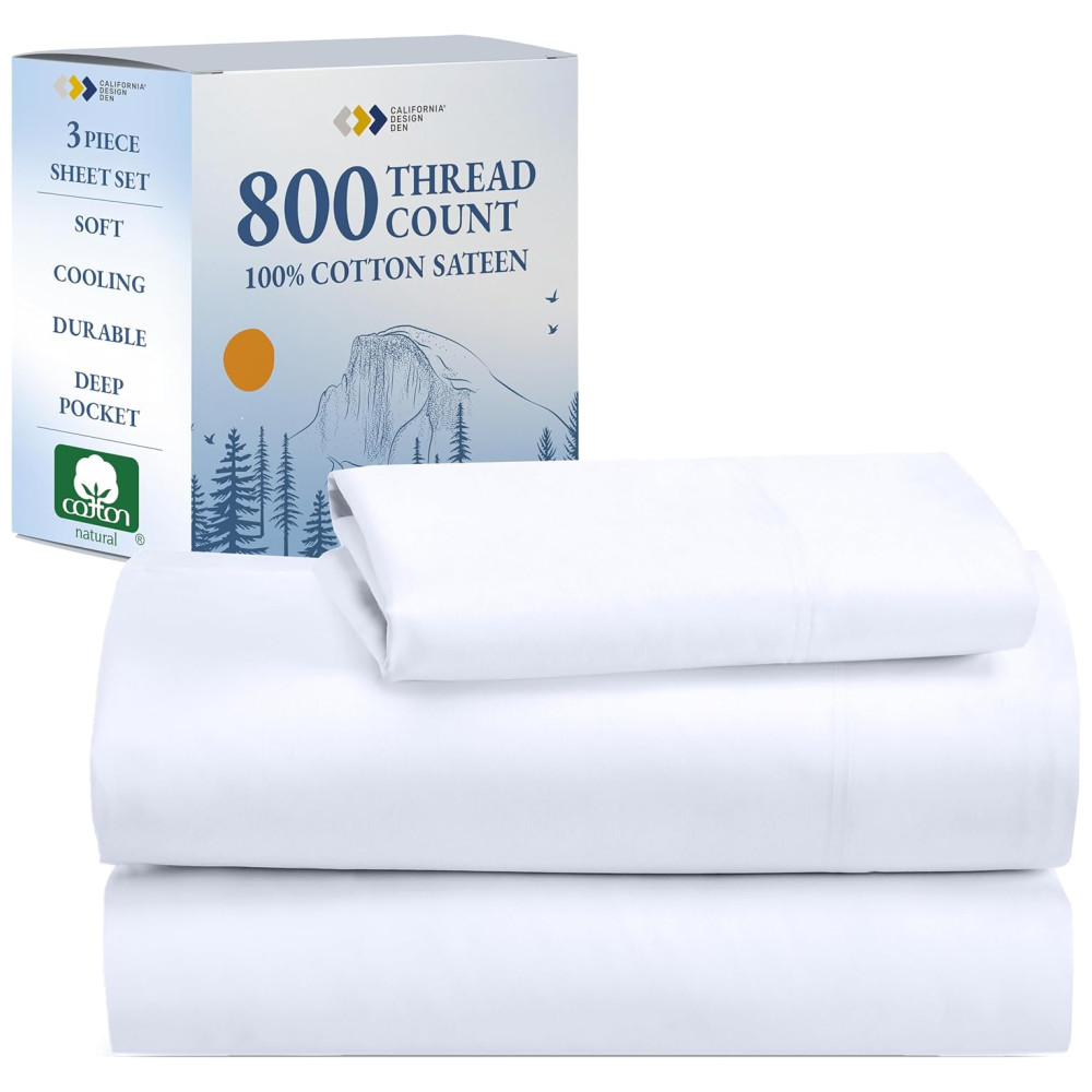 Conjunto de Lençóis de 800 Fios com Elástico Tamanho Solteiro Macio e Sedoso com Material 100% Algodão California Design Den Branco
