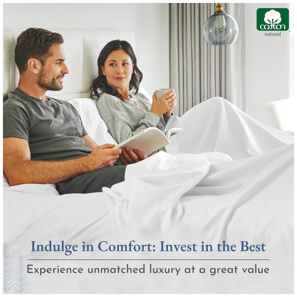 Desfrute de uma noite de sono confortável e luxuosa com nosso conjunto de lençóis Cal King de 800 fios e 100% algodão. A trama acetinada e o acabamento sedoso garantem uma sensação fresca e suave durante todo o ano, oferecendo o equilíbrio perfeito entre luxo e comodidade. Este conjunto se destaca ao superar os lençóis de algodão egípcio de tamanho king size da Califórnia em termos de qualidade e toque.