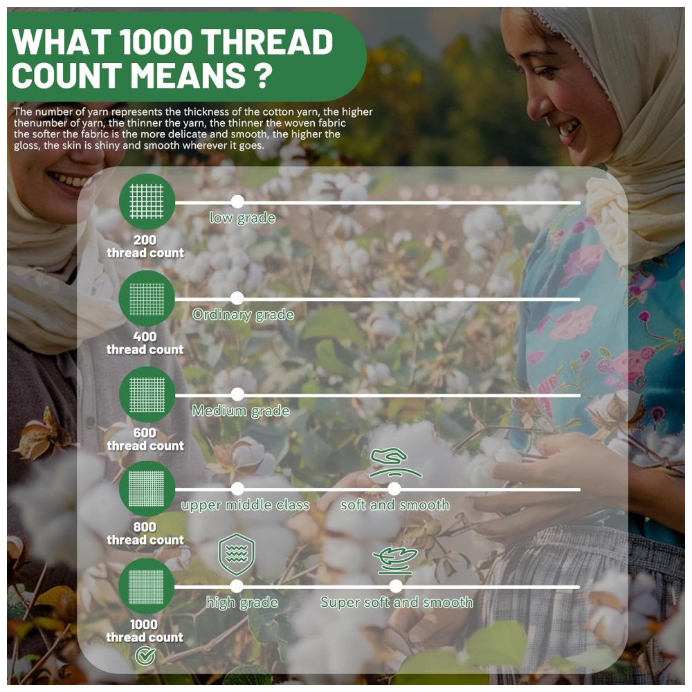 Qualidade Premium: Feitos de algodão egípcio de alta qualidade, esses lençóis são incrivelmente macios, respiráveis e duráveis, proporcionando um nível excepcional de conforto e elegância ao seu quarto. A trama de 1000 fios confere uma textura sedosa, ideal para noites de sono luxuosas e tranquilas.