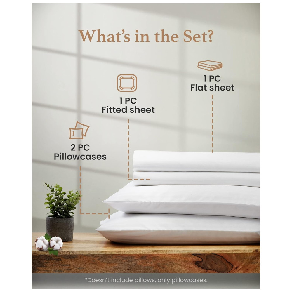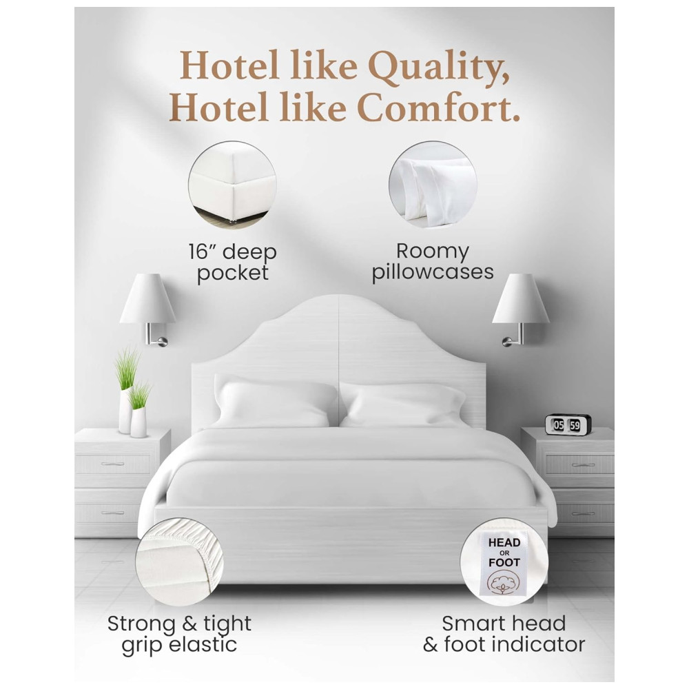 Conjunto de Lençóis em Algodão Egípcio de 1000 Fios Tamanho King Super Macio e Respirável Good Sleep Bedding Branco