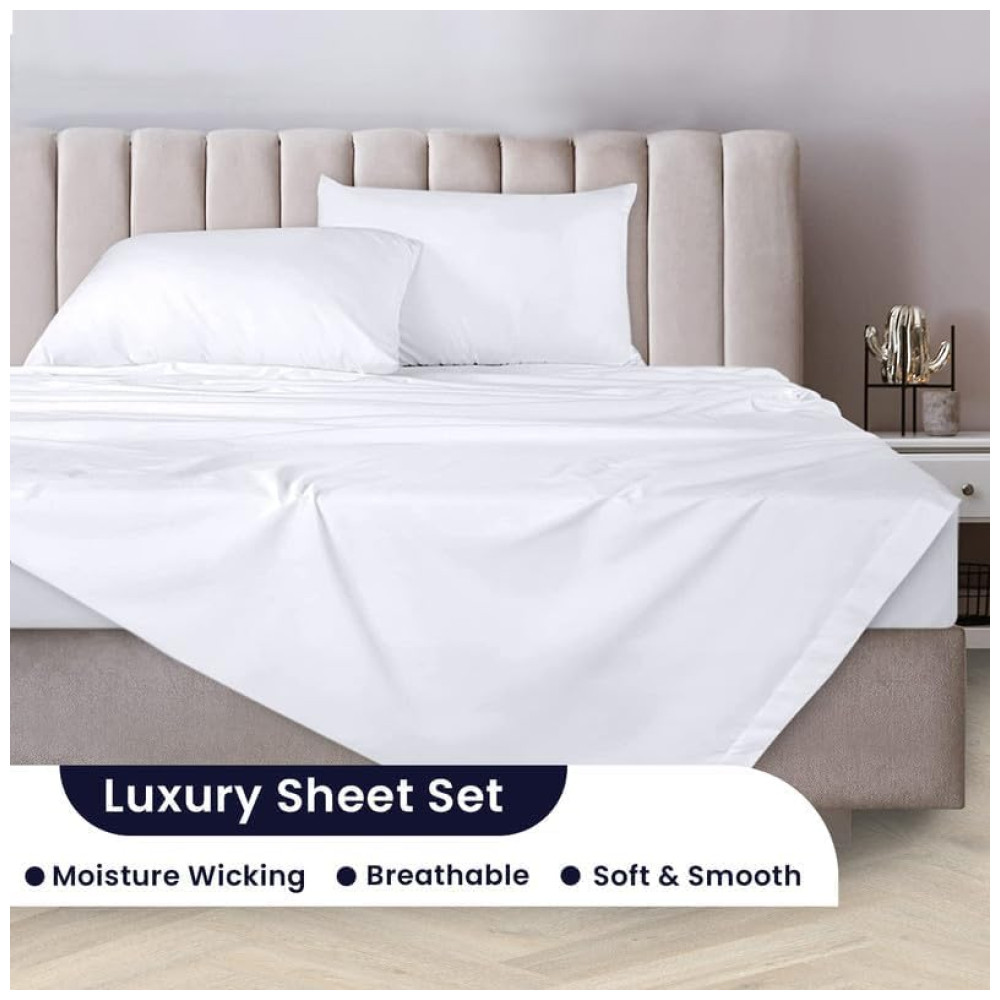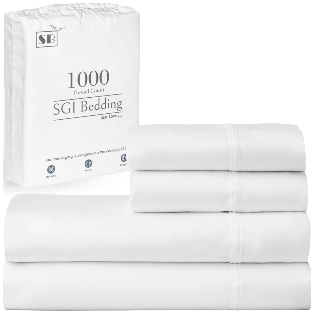 Conjunto de Lençóis em Algodão Egípcio de 1000 Fios Tamanho King Super Macio e Respirável SGI bedding Branco