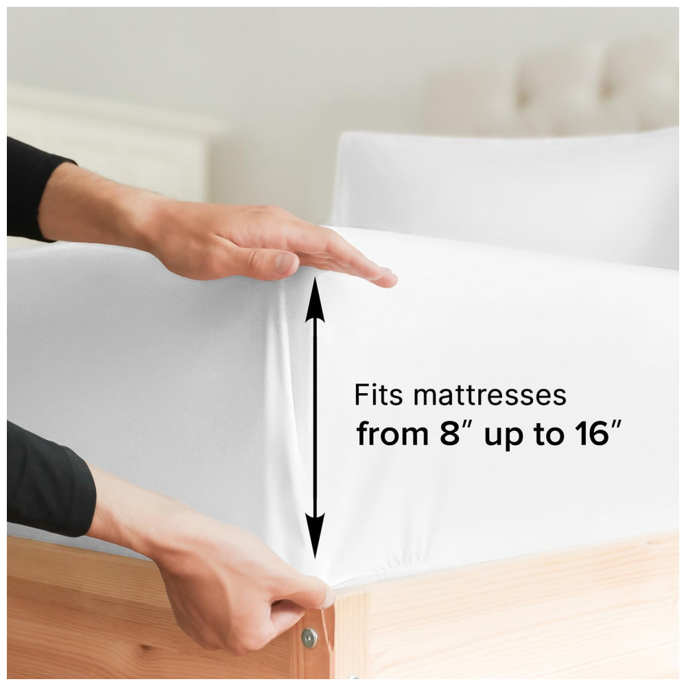 O lençol com elástico se adapta a colchões de até 40 cm (16 polegadas) de profundidade, oferecendo um ajuste perfeito e seguro.