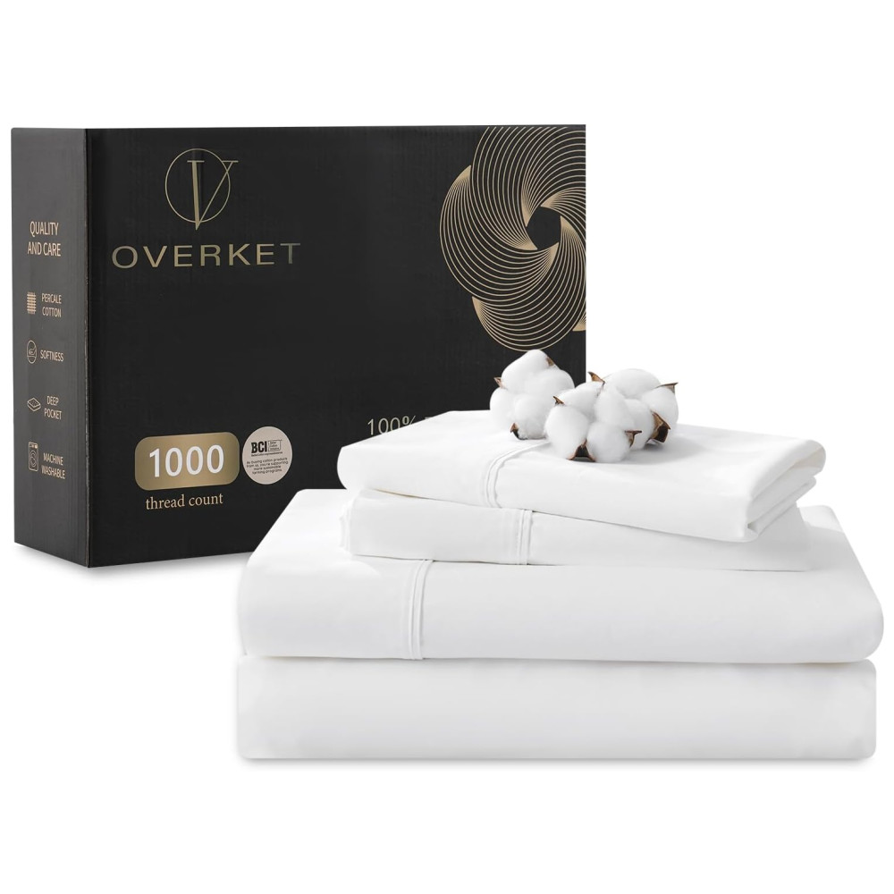 Conjunto de Lençóis Queen Size de Algodão Egípcio 1000 fios Cetim Weave Suave e Macio Conjunto 100 Algodão. Overket