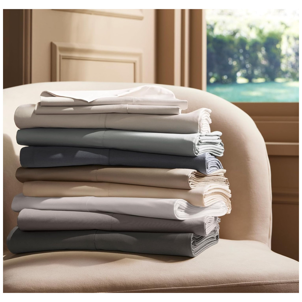 Conjunto de Lençol com Bainha de Algodão Orgânico: Este conjunto de lençol premium é feito de 100% algodão orgânico certificado de fibra longa premium, garantindo uma qualidade excepcional. O tecido é amanteigado e respirável, proporcionando um conforto incomparável durante o sono.
