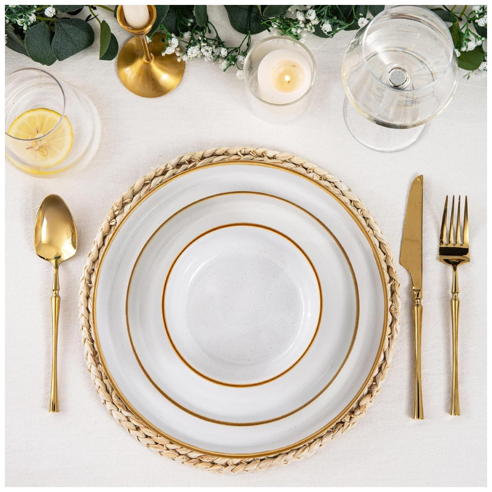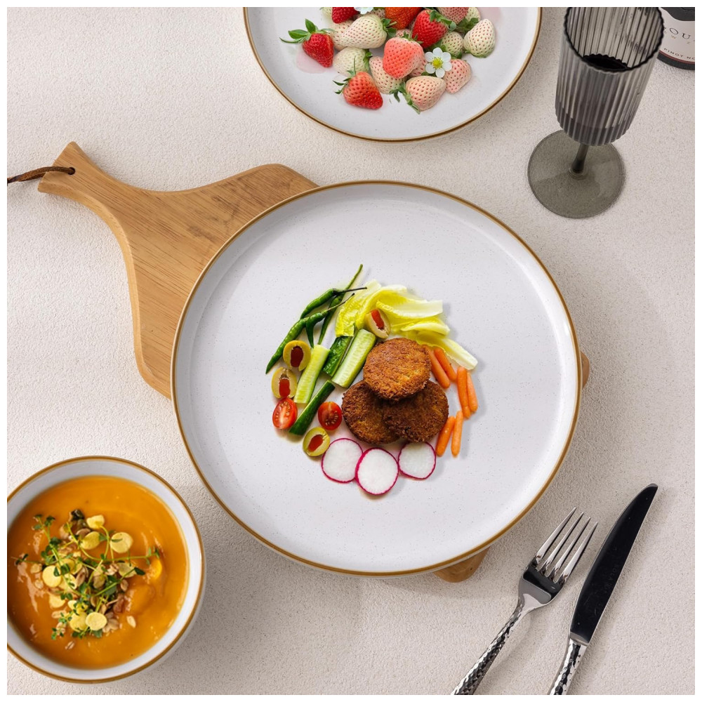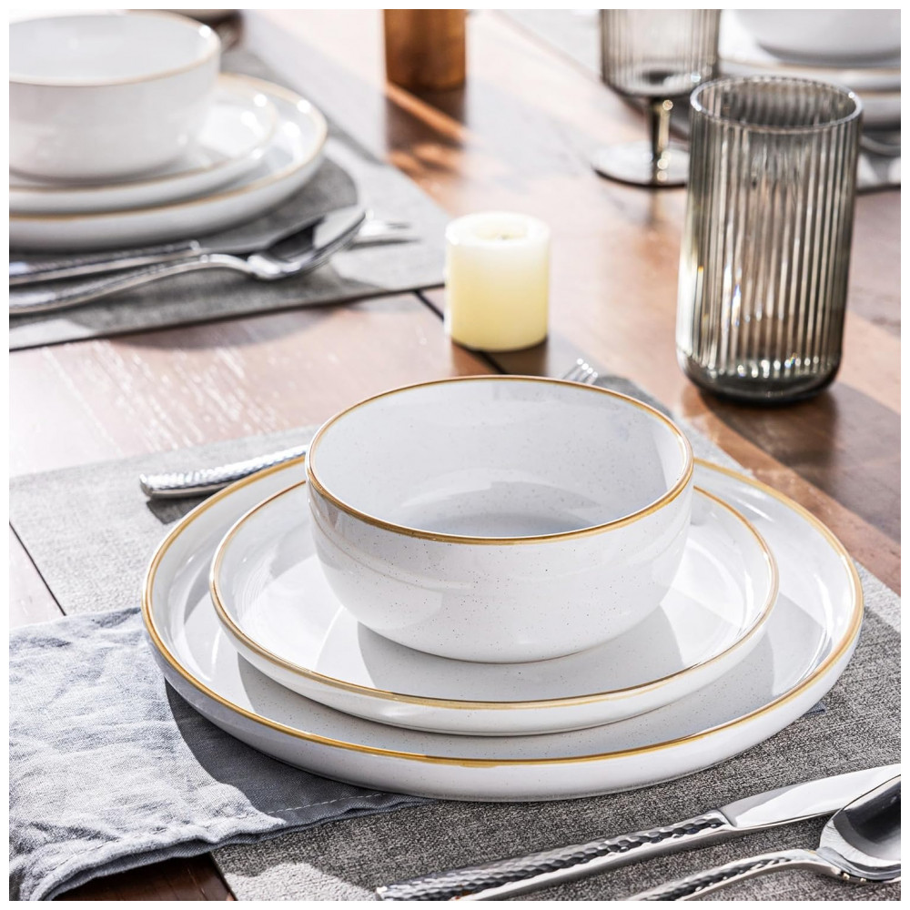 Conjunto de Louça AmorArc 12 Peças em Cerâmica Branca Pintada à Mão Pratos e Tigelas Seguro para Micro-ondas e Lava-louças Para Servir 4 Pessoas