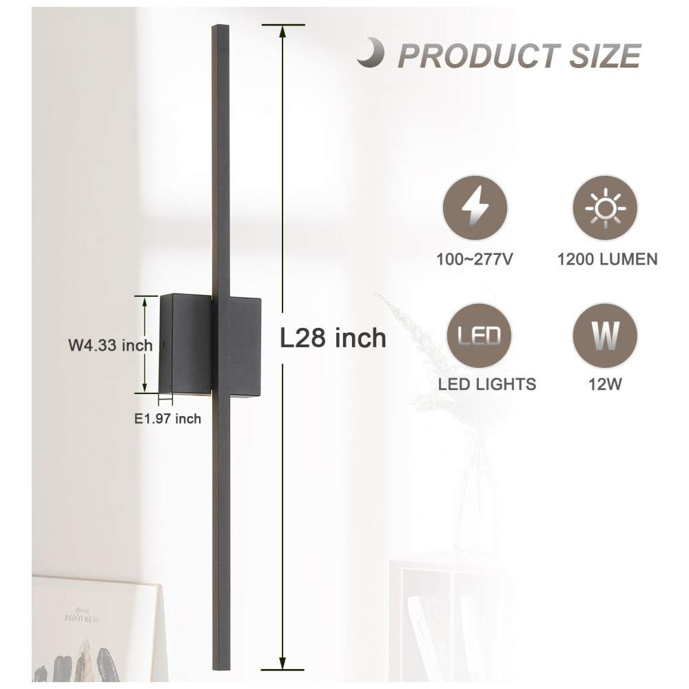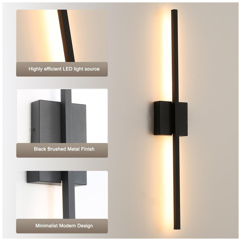 As luminárias de parede de LED pretas são confeccionadas com metal resistente e possuem um acabamento moderno na cor preta, trazendo um toque de sofisticação para qualquer ambiente. A faixa de luz LED embutida é econômica, com longa durabilidade, e oferece uma iluminação suave, ideal para proteger os olhos enquanto proporciona o brilho necessário para destacar qualquer espaço.