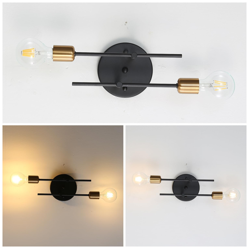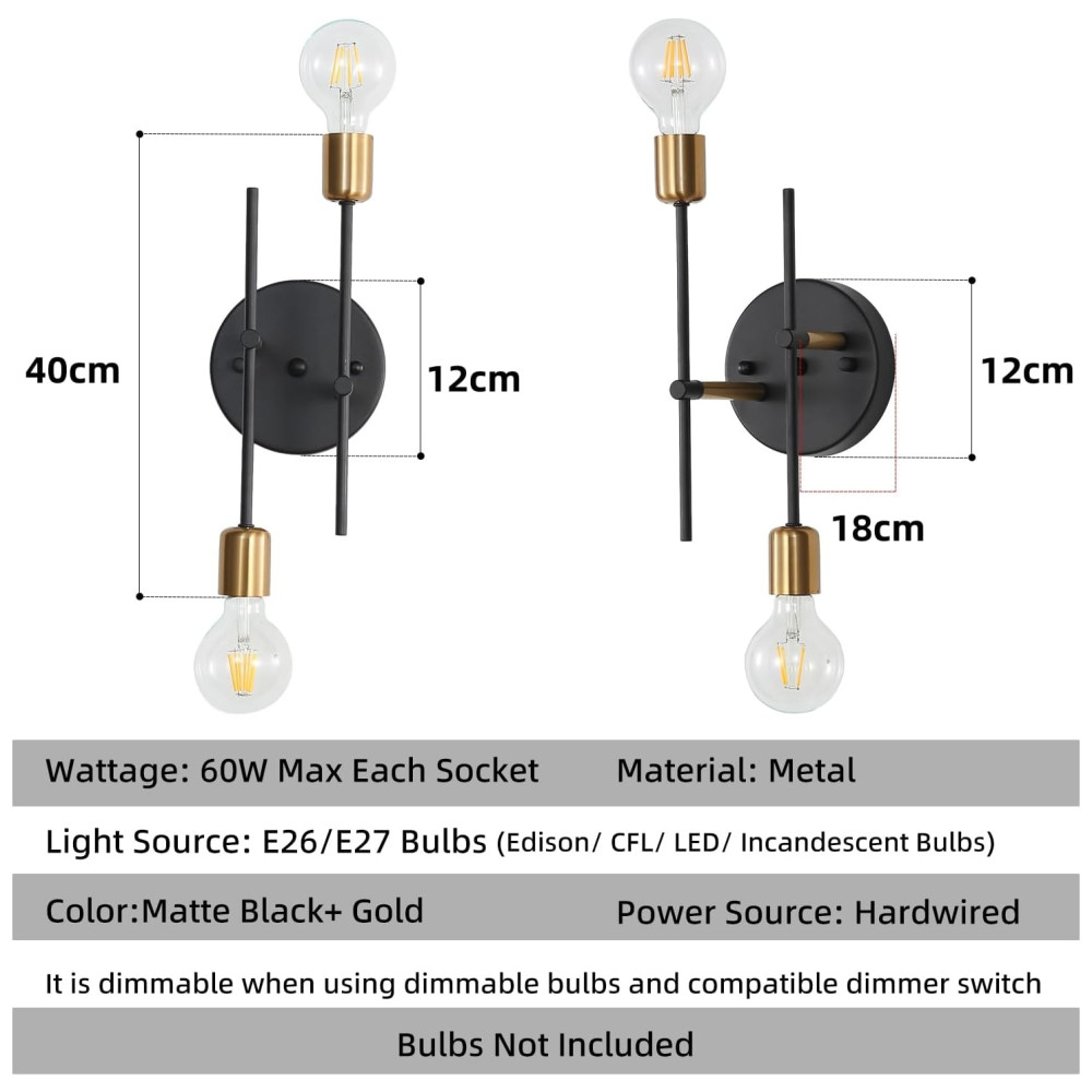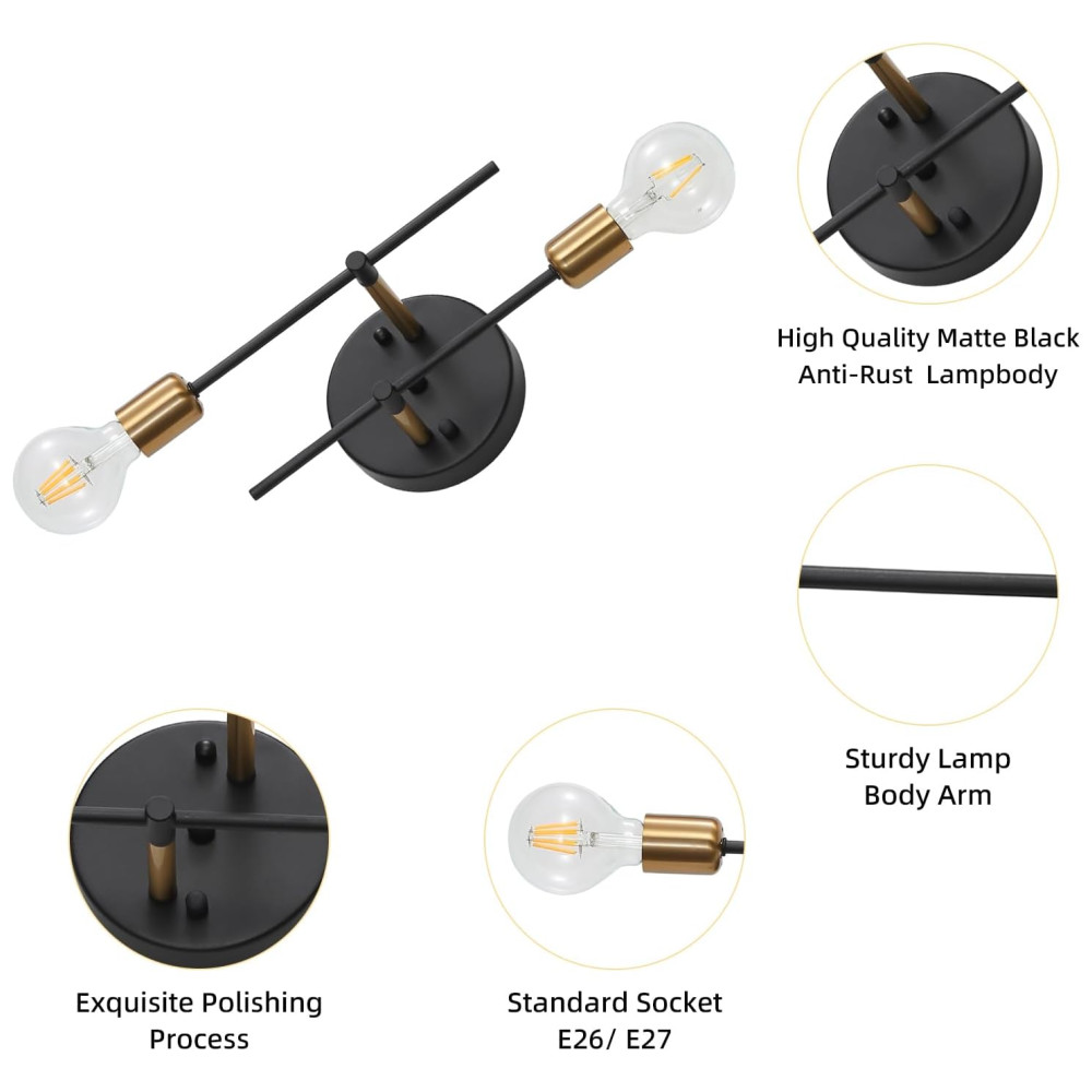 Conjunto de Luminária de Parede com Fio Estilo Industrial Moderna Material de Metal e 2 Peças110V EFINEHOME Preto Fosco