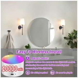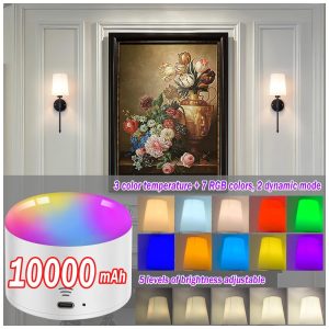 Além disso, as luminárias operadas por bateria permitem uma personalização completa da iluminação, oferecendo 7 cores RGB e 2 modos dinâmicos, além de 3 temperaturas de cor para você escolher, proporcionando a atmosfera perfeita para qualquer ambiente.