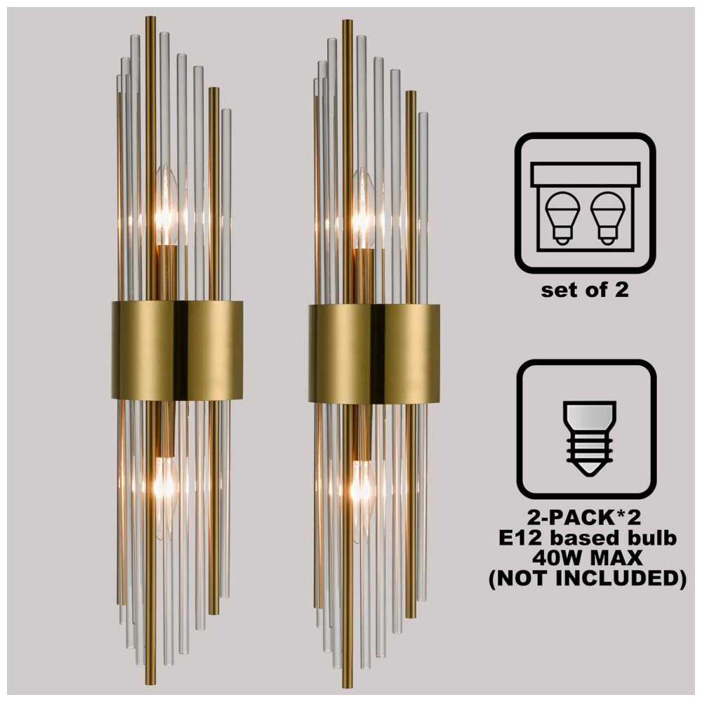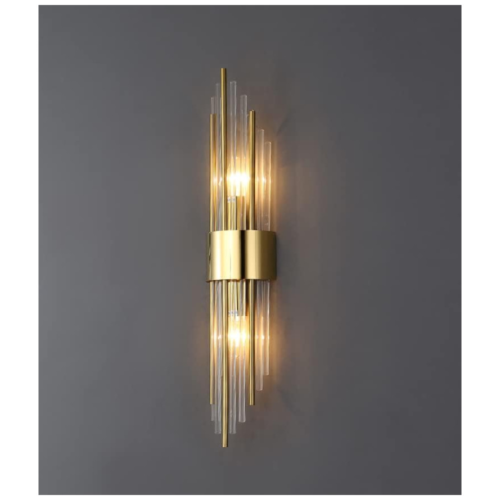 Conjunto de Luminária de Parede em Cristal de Vidro Transparente com 2 Peças Transmissão de Luz Suave e Uniforme 110V SHAWNKEY Dourado