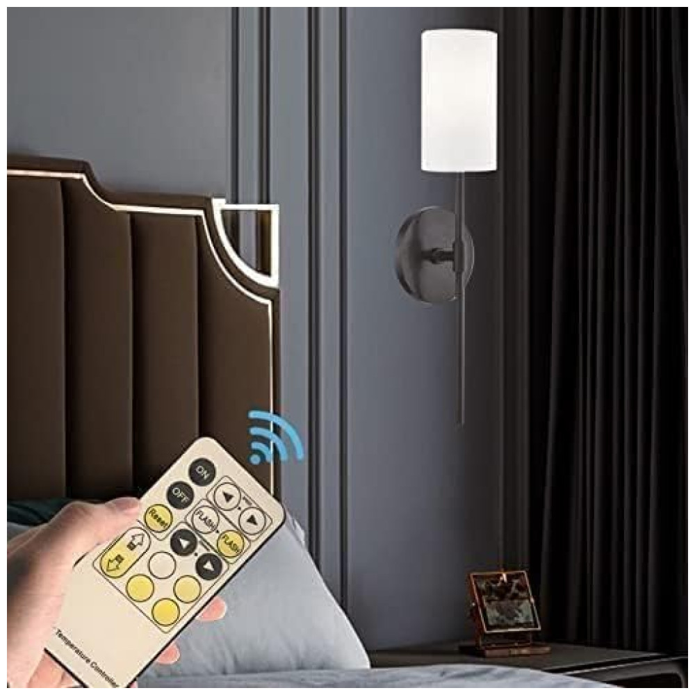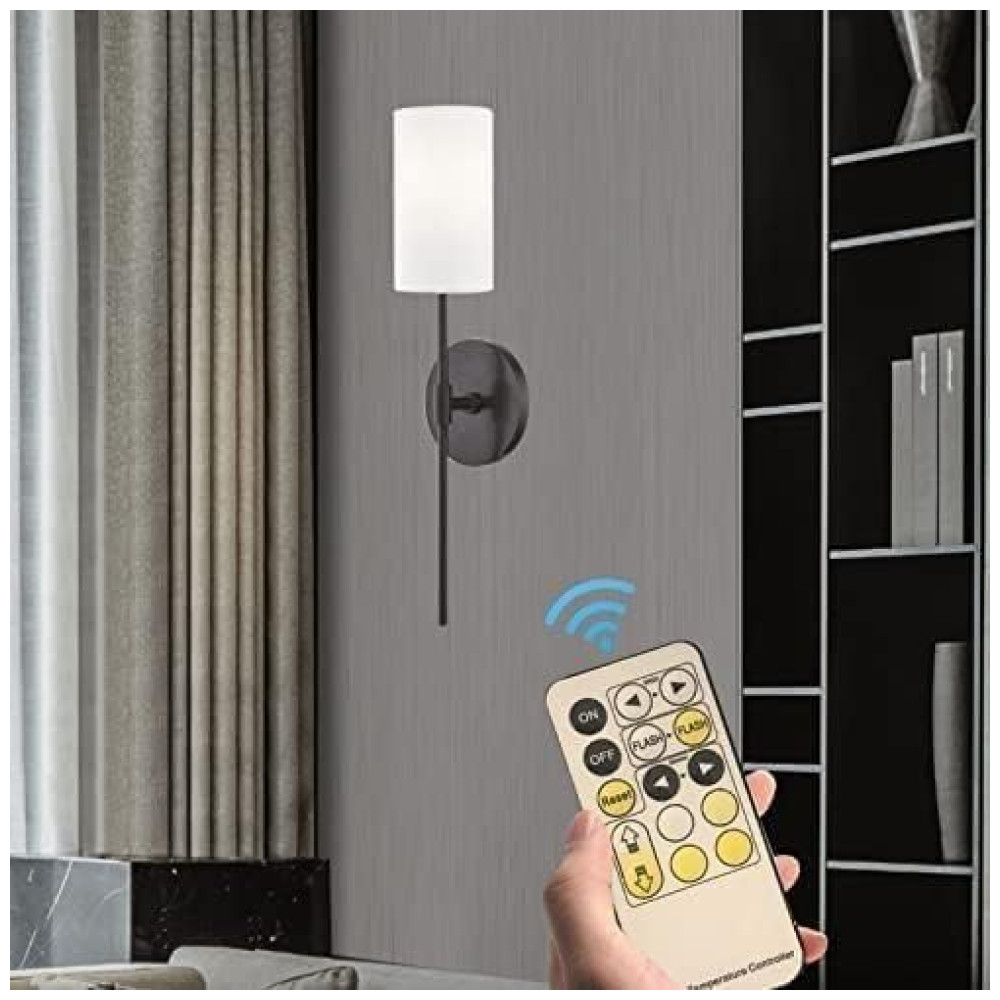 Conjunto de Luminária de Parede Mais Elegancia Para Sua Casa Sem Fio com 2 Peças Estilo Moderno Bateria Recarregável e Controle Remoto vsGotber Preta