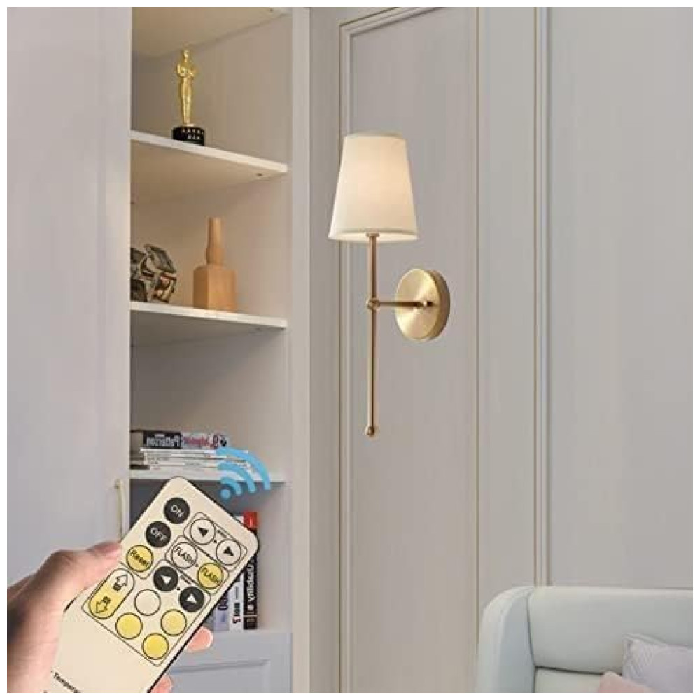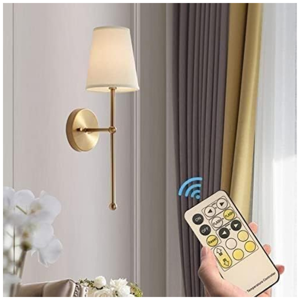 Conjunto de Luminária de Parede Sem Fio com 2 Peças Estilo Moderno Bateria Recarregável e Controle Remoto 110V vsGotber Dourado