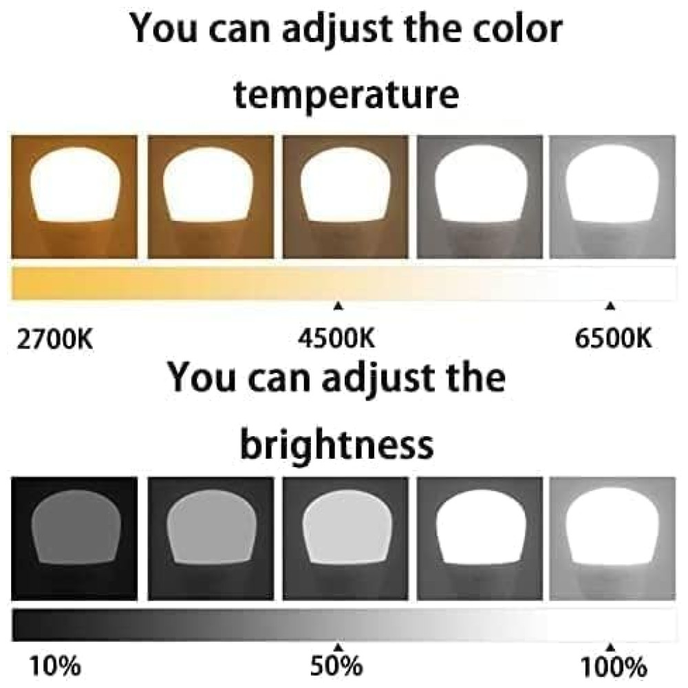 A luminária não requer ligação elétrica, o que facilita sua instalação em qualquer local, sem a necessidade de eletricista. Ela é alimentada por uma bateria recarregável de 5000mAh, que oferece duas opções de brilho: 100% de brilho para até 30 horas de uso contínuo ou 10% de brilho para até 200 horas. Além disso, a intensidade da luz pode ser ajustada tanto por um botão de escurecimento manual quanto pelo controle remoto de 15 teclas, permitindo que você selecione o nível de brilho exato e altere entre as duas temperaturas de cor disponíveis: luz amarela ou luz branca.