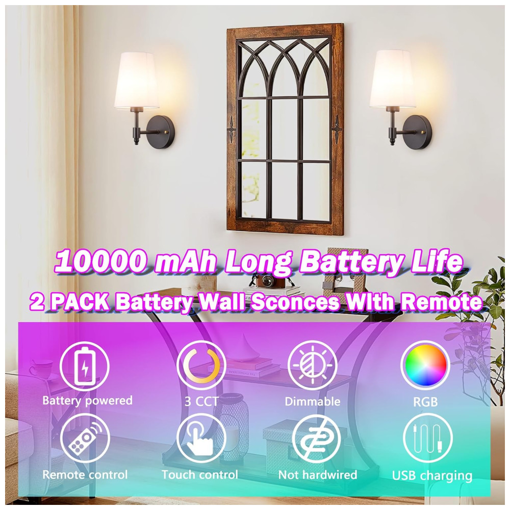 Conjunto de Luminária de Parede Sem Fio com 2 Peças Estilo Retrô Carregamento USB e 7 Opçoes de Cores RGB Slywise Preta