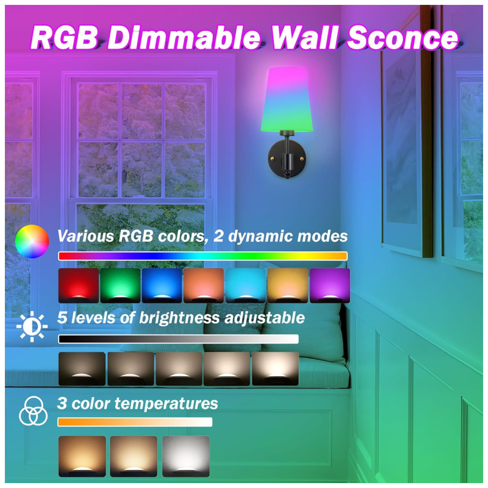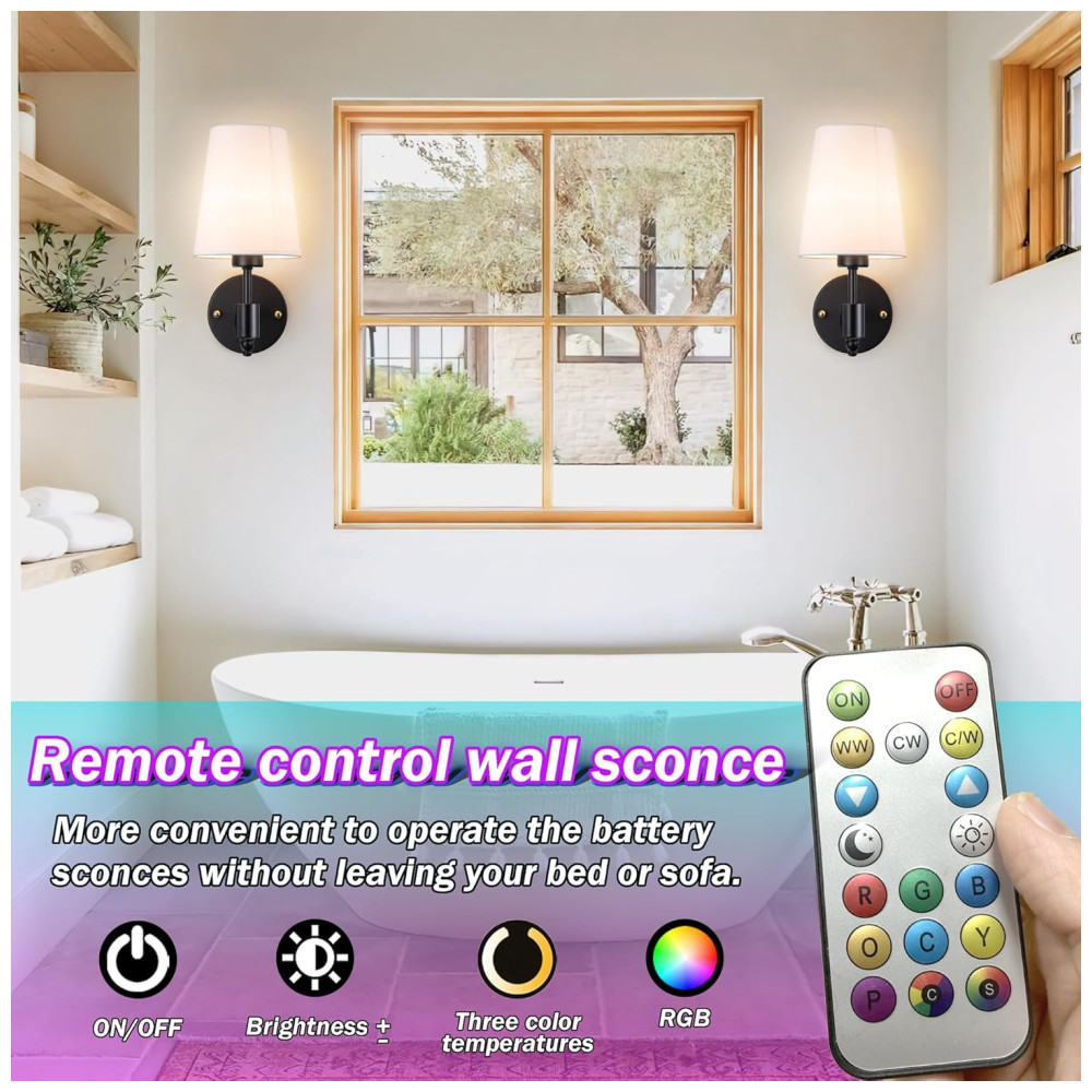 O conjunto também inclui as arandelas de parede com controle duplo, que oferecem opções de controle de toque para ligar/desligar, ajustar a temperatura de cor e o brilho. Além disso, você pode controlá-las facilmente com o controle remoto incluso, com alcance de até 5 metros (16 pés), o que facilita o uso enquanto está na cama ou no sofá.