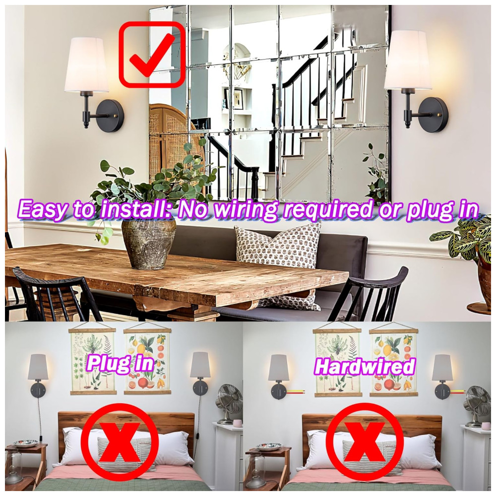Este conjunto de luminárias de parede é perfeito para quem quer decorar sem precisar contratar um eletricista. Com instalação simples e operação fácil, as luminárias são sem fio e podem ser montadas rapidamente, sem complicação. Ideal para áreas sem tomadas, o aplique de parede a pilhas vem com controle remoto e é regulável, permitindo ajustar o brilho em até 5 níveis.