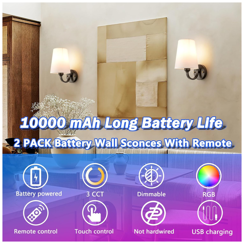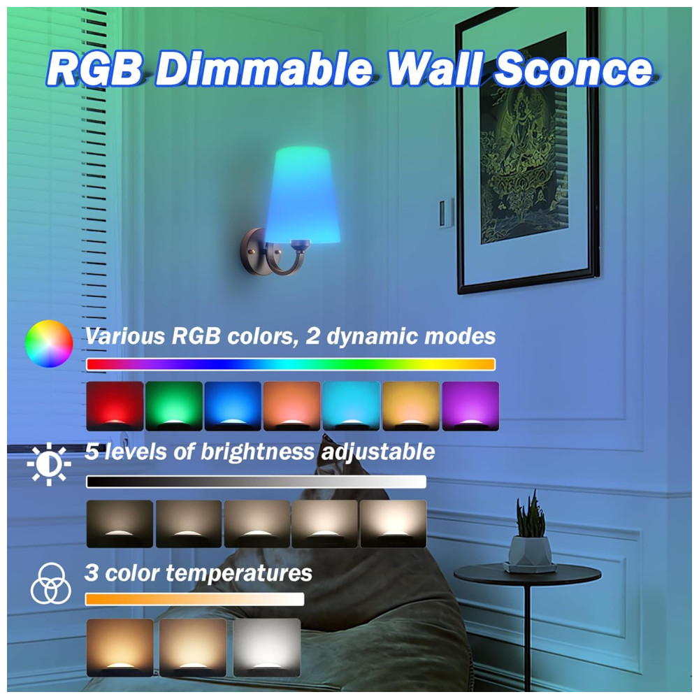 Conjunto de Luminária de Parede Sem Fio com 2 Peças Estilo Retrô Carregamento USB e 7 Opçoes de Cores RGB Slywise Preta