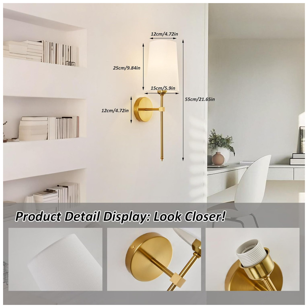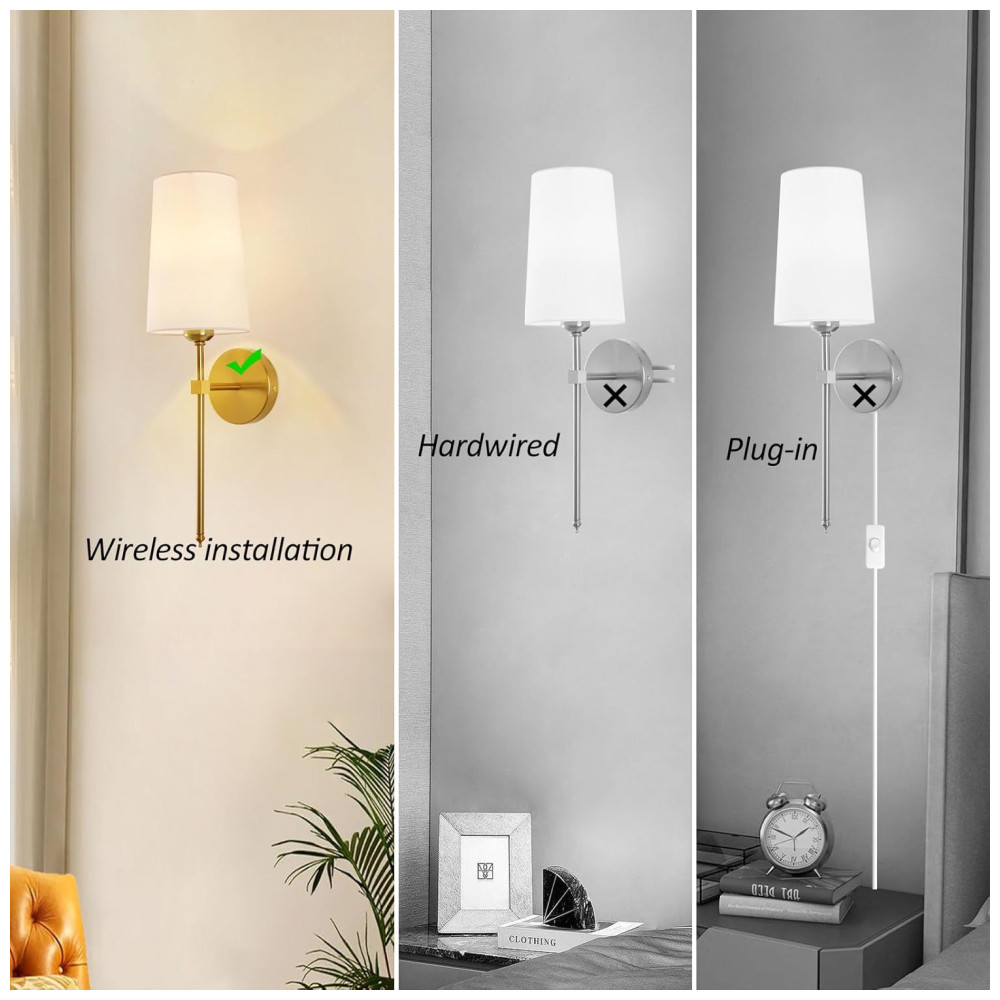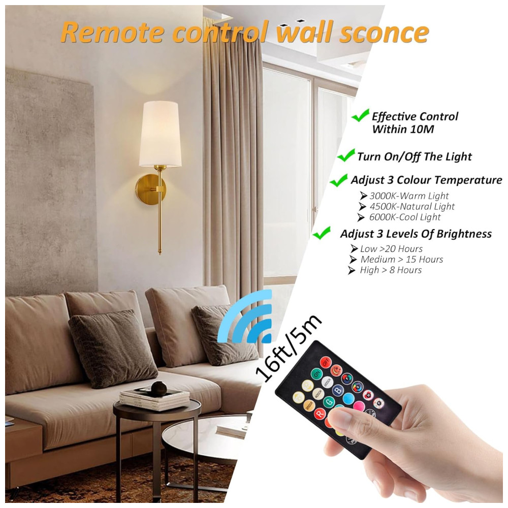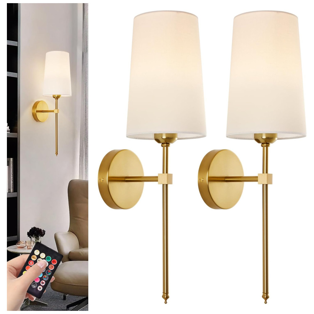 Conjunto de Luminária de Parede Sem Fio com Controle Remoto e Carregamento via USB 2 Peças CCKZQYR Dourado
