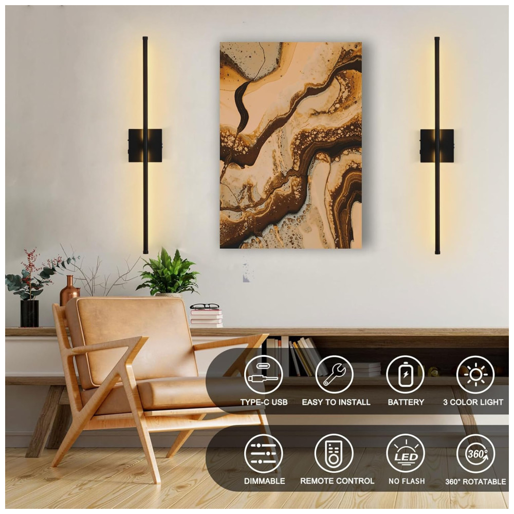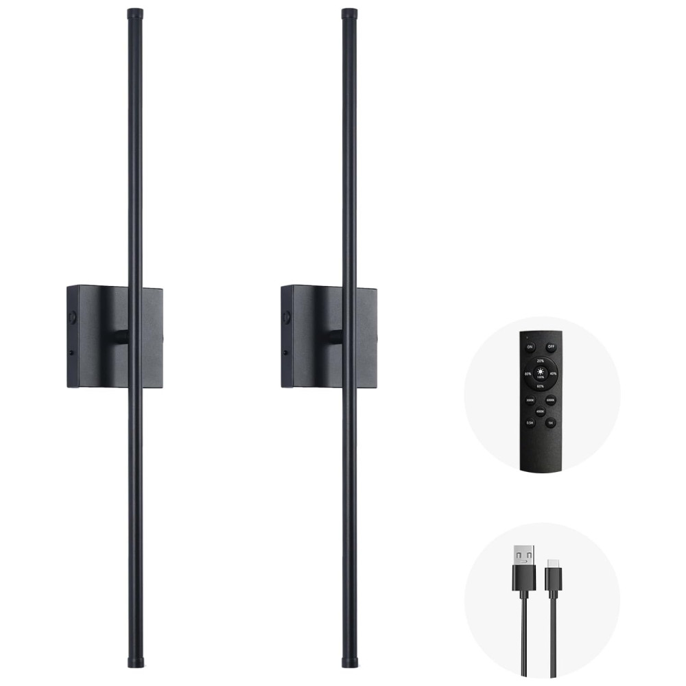 Conjunto de Luminária de Parede Sem Fio com Rotação de 360° Controle Remoto e Bateria Recarregável via USB 110V Morpholife 0117B Preta