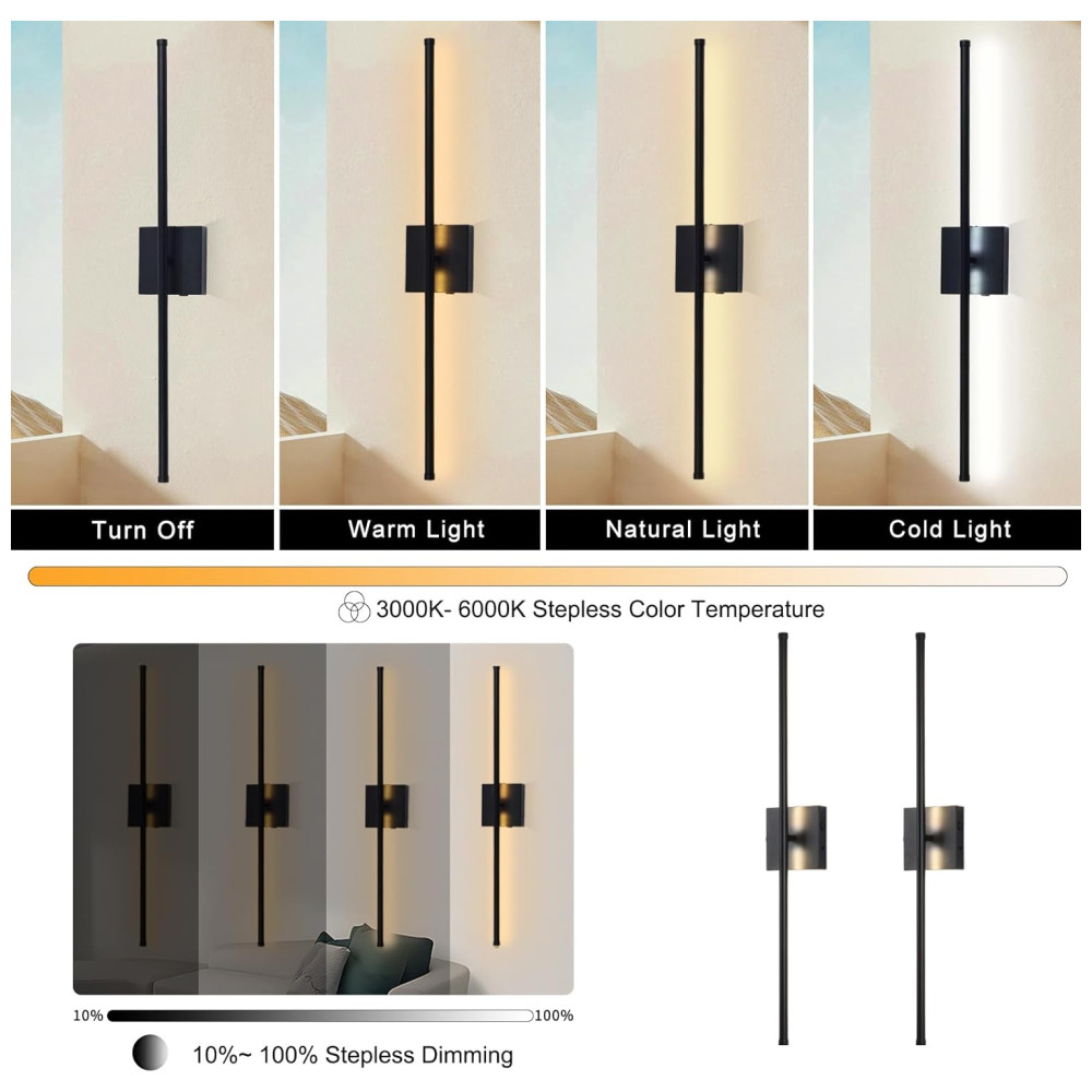Este conjunto de duas luminárias de parede LED reguláveis oferece uma solução prática e versátil para iluminar diversos ambientes da sua casa. Com escurecimento contínuo de 10% a 100%, você pode ajustar facilmente o brilho para atender às suas necessidades, criando a atmosfera ideal para qualquer ocasião. Além disso, a luminária oferece três opções de temperatura de cor: 3000K (luz quente), 4500K (branco neutro) e 6000K (luz fria), permitindo um controle total sobre a iluminação e criando uma sensação acolhedora em qualquer ambiente.